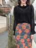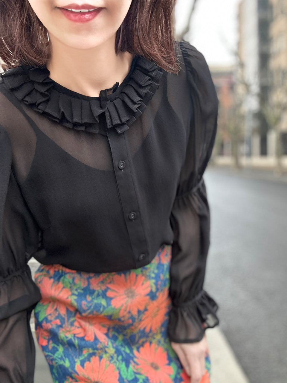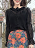 Final Sale! Sheer Noir Pleated Collar Tiers Sleeve Silky Blouse