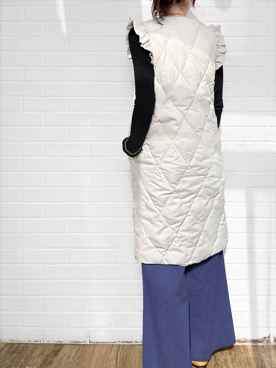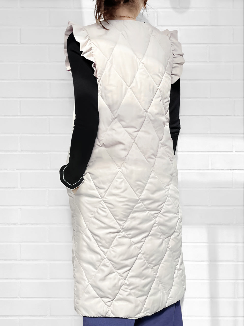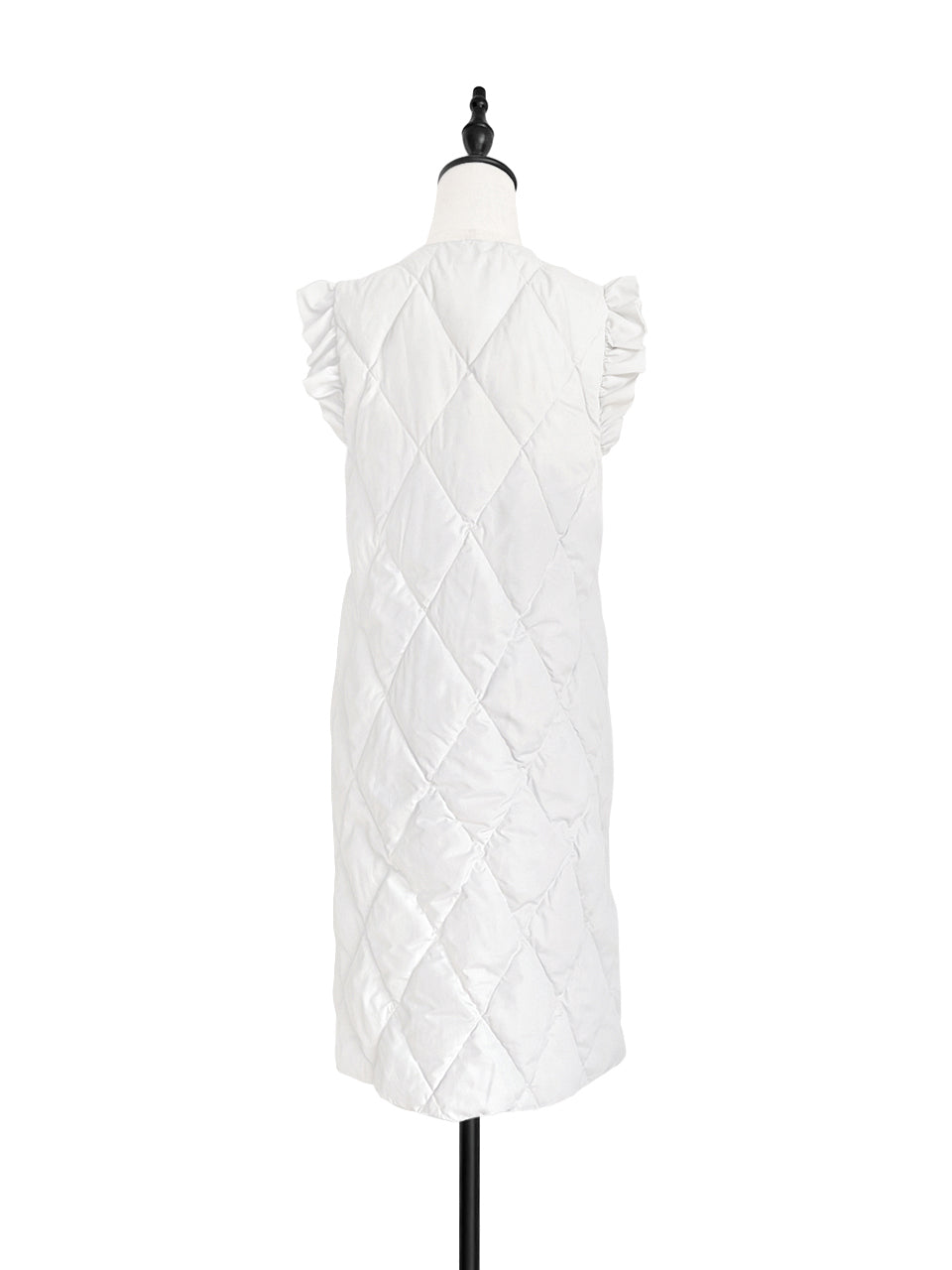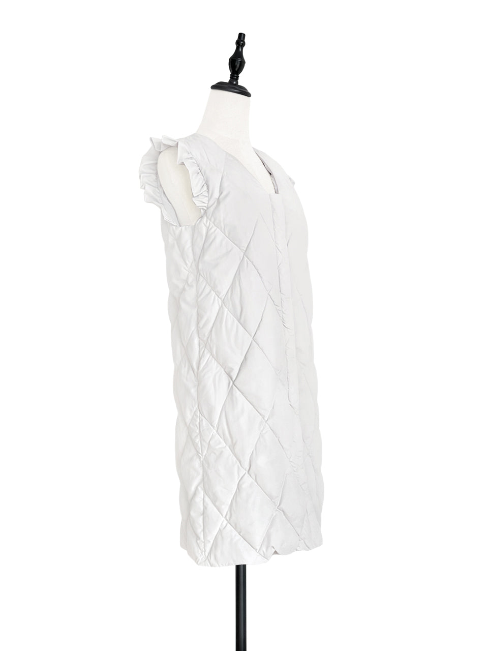 Surprise Sale! Platinum White Frill Shoulder Longline Quilted Down Vest