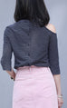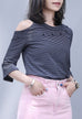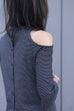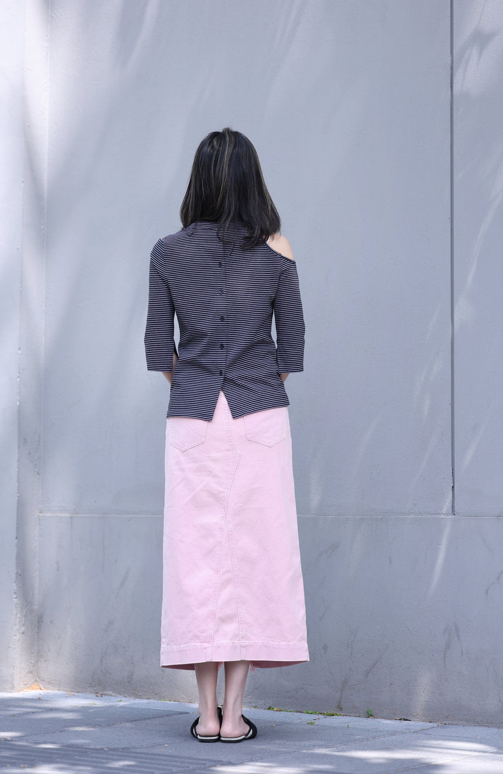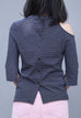 A fresh twist on everyday cool—this cotton blend tee turns heads with its asymmetrical cut-off shoulder, eye-catching button details across the chest and back, and a subtly sculpted neckline. With elbow-length slit sleeves and three easy-to-style colourways, it’s the kind of piece you’ll reach for again and again. Don’t wait—this one won’t stay in stock. Available in white striped on black, black striped on white and, solid white.