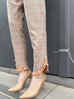 Surprise Sale! Sunset Orange Check Ruffle Waist Tapered Ankle Woolly Trousers