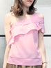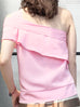 Pinky-Day! Pink One-Shoulder Draped Ruffle Blouse