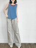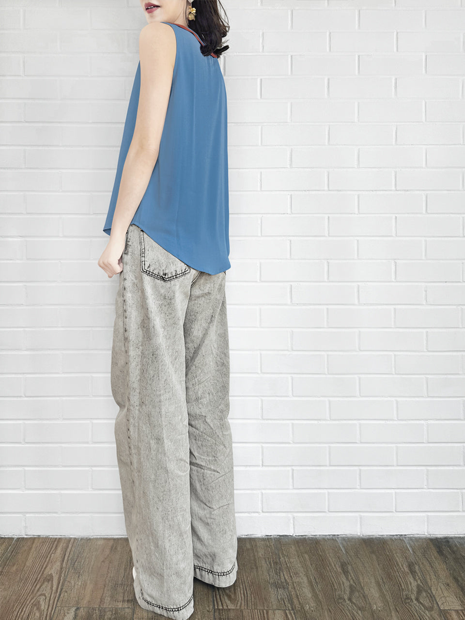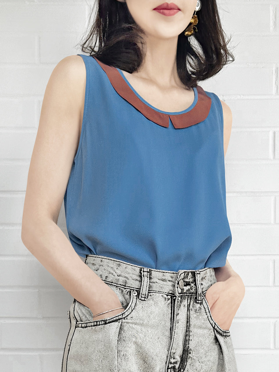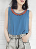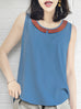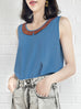 Final Sale! Vintage Blue Contrasted Collar Tank Sleeveless Longline Top