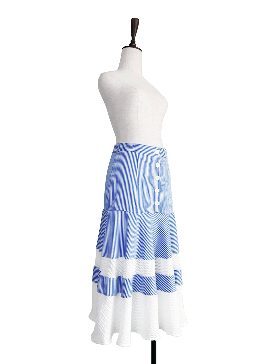 Further Sale! Blue Stripe Geometric Lace Ruffle Midi Skirt