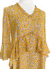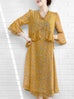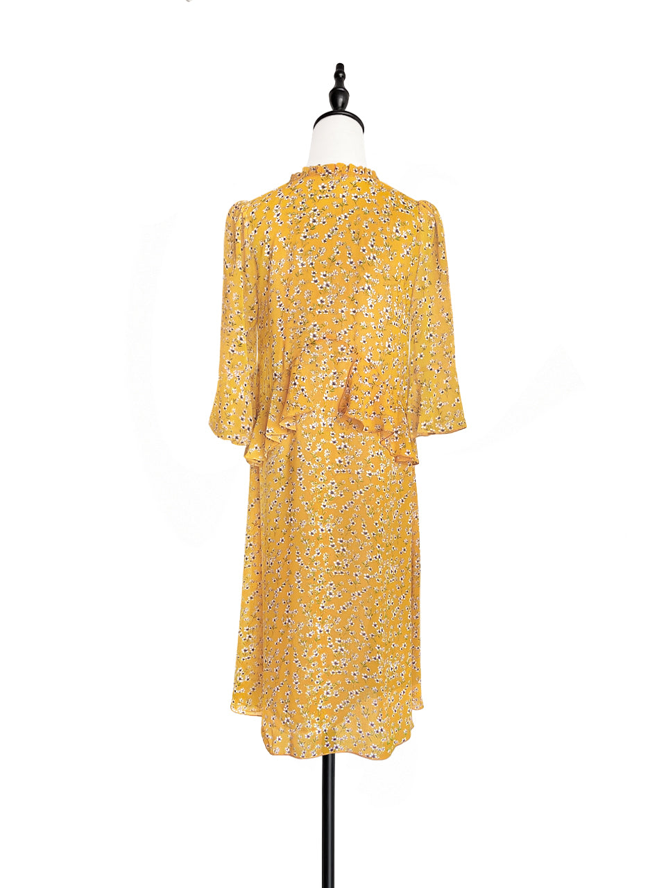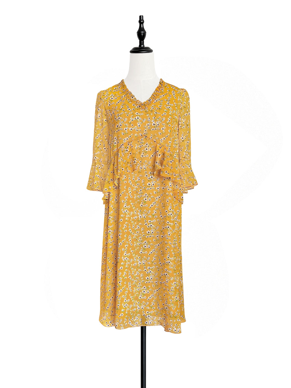 Surprise Sale! Yellow Flowers Print Ruffle Elbow Sleeve Airy Dress