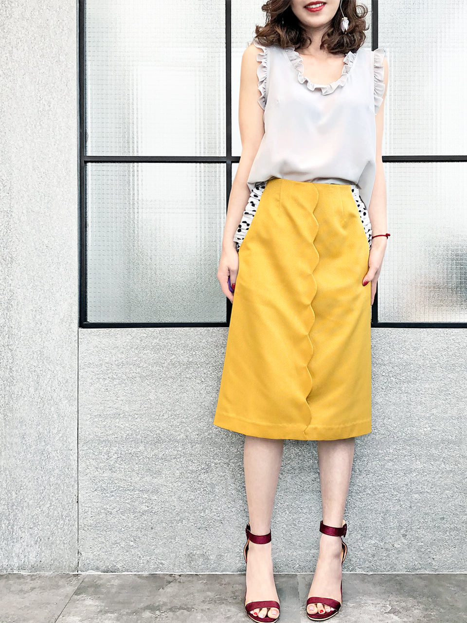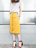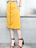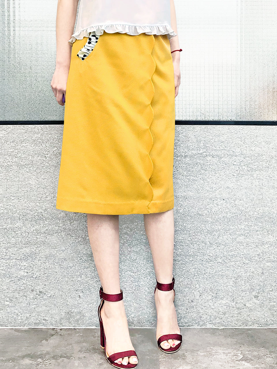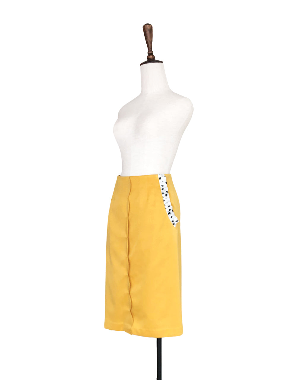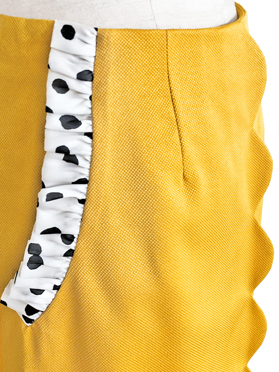 Surprise Sale! Yellow Scallop Detail Dotty Ruffle Pocket Pencil Skirt