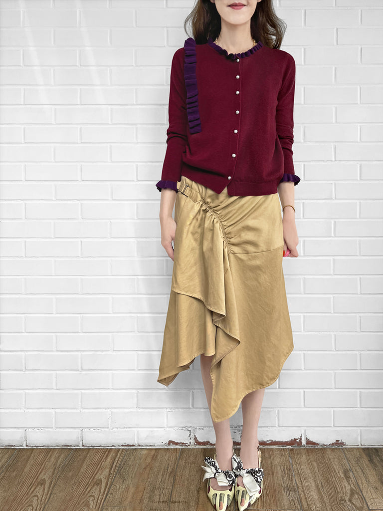 Creamy White Ruffle Trim Button Cuff Cashmere Wool Knit Jumper