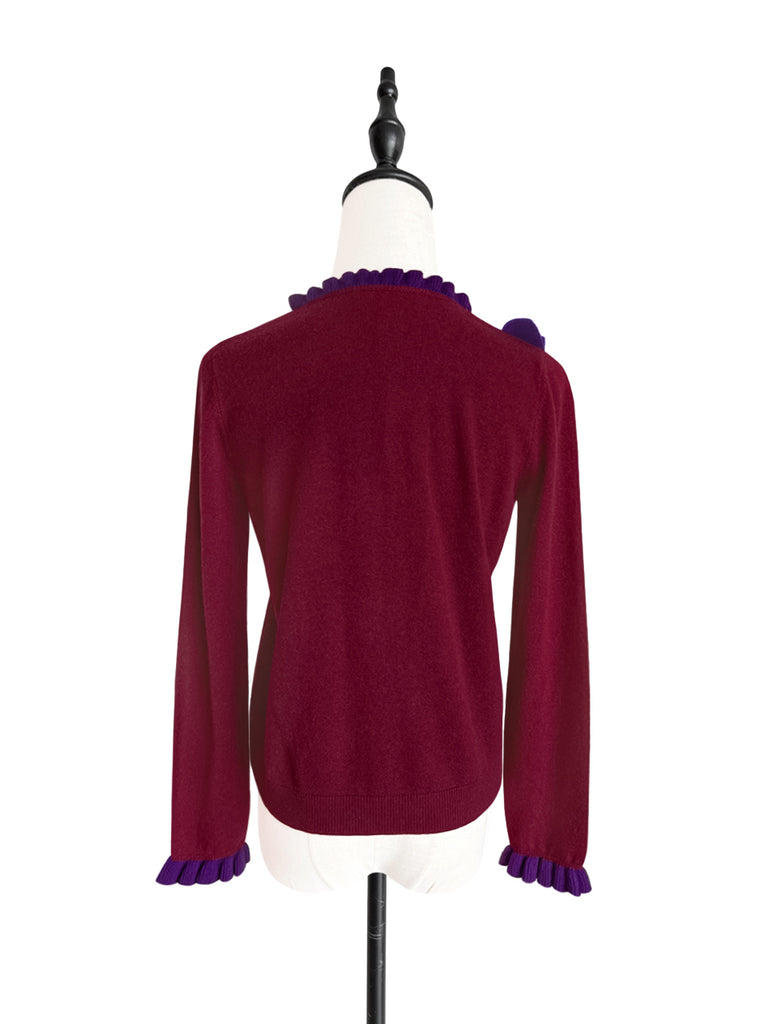Classic Black Ruffle Trim Button Cuff Cashmere Wool Knit Jumper