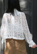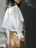 White Floral Scarf Collar Cutout Lace A-lined Jacket