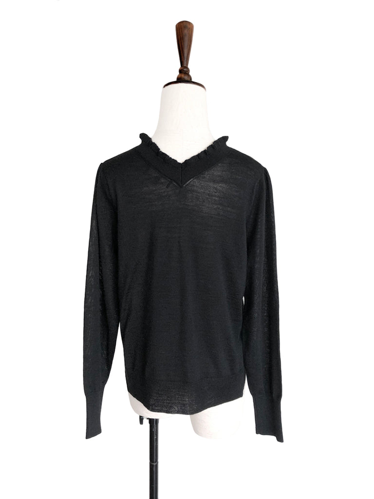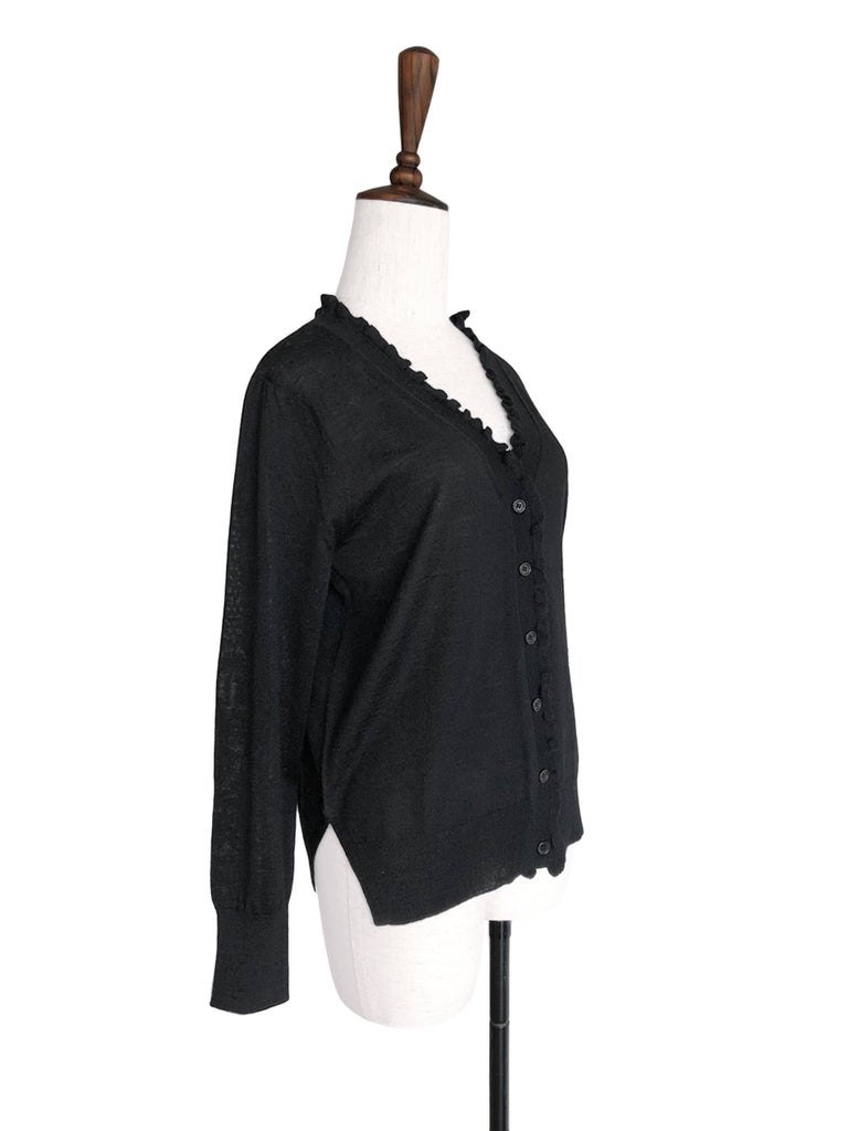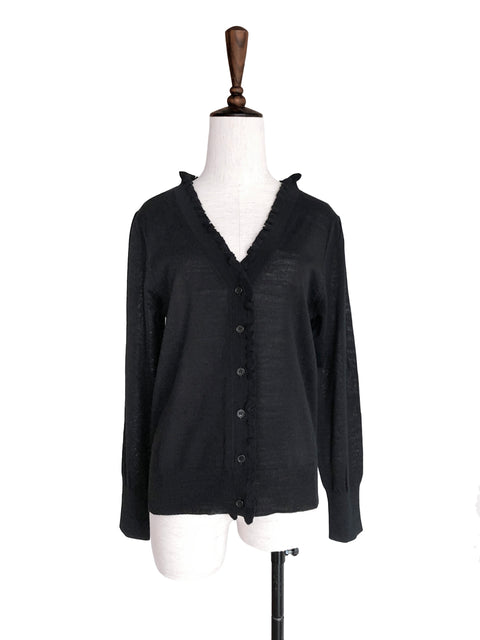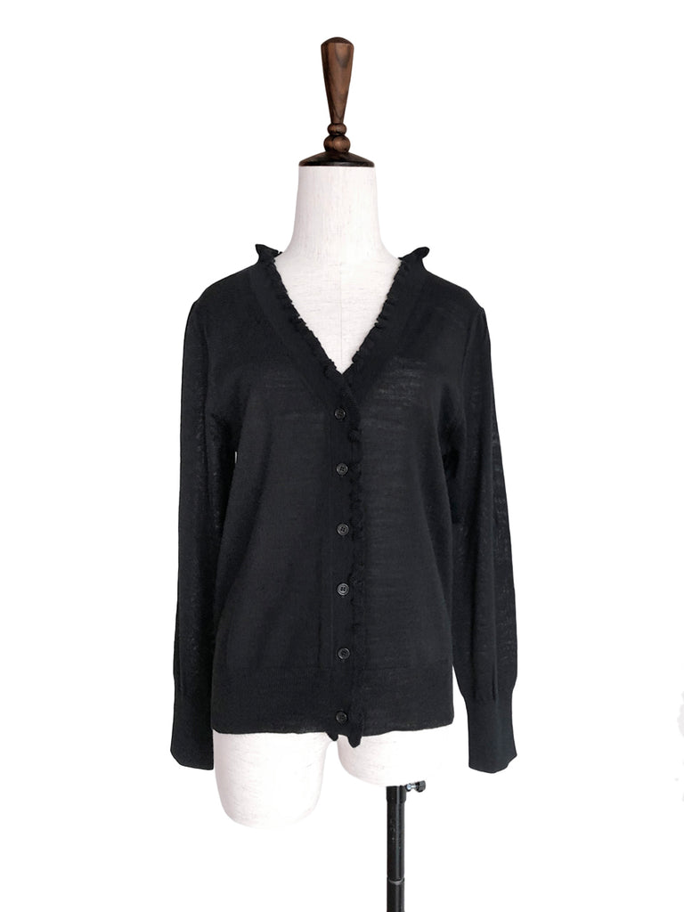 驚喜促銷!黑色扇貝邊 2 向鉤編開襟衫上衣
