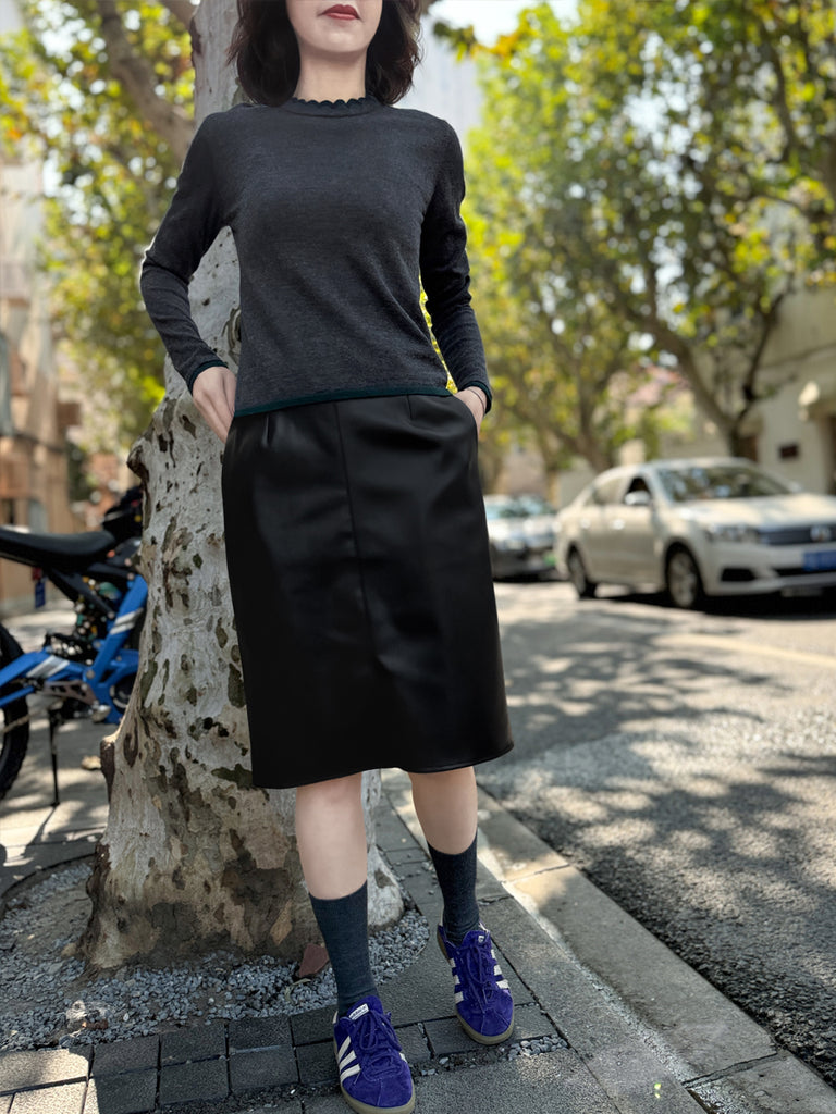 Charcoal/ Green Scalloped Double Collar Cashmere Woollen Jumper