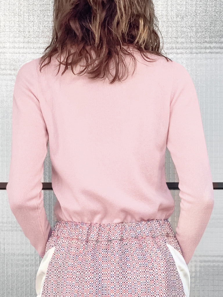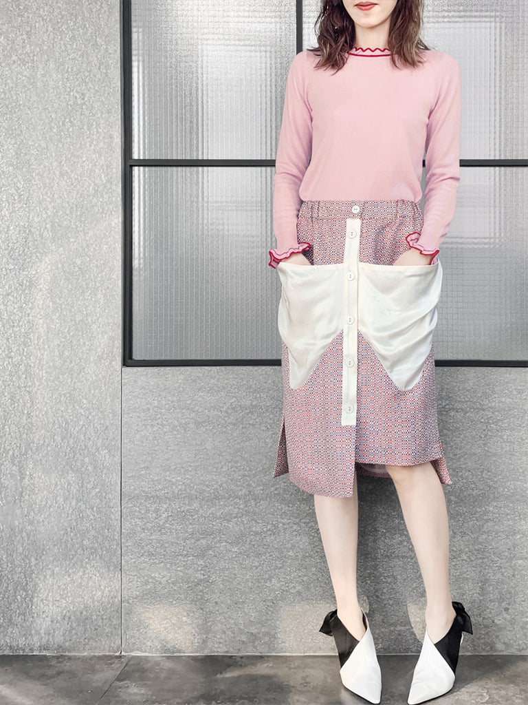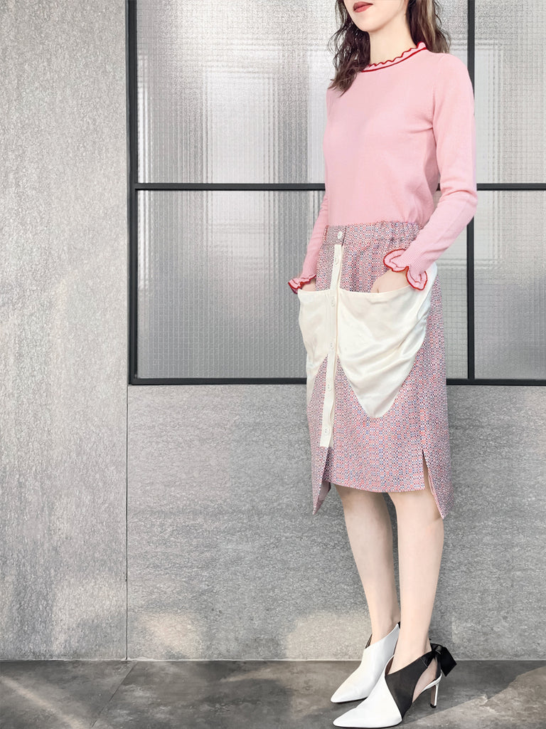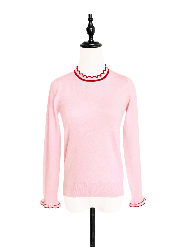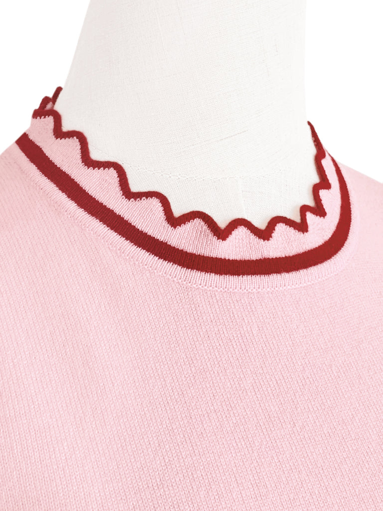 最後的機會! Pinky 扇貝領撞色飾邊羊絨羊毛混紡毛衣