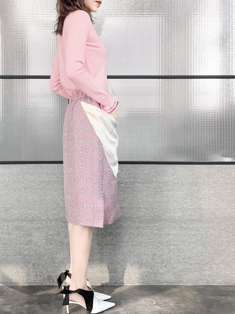 驚喜促銷! Pinky 拼色扇貝領挖肩羊絨混紡毛衣