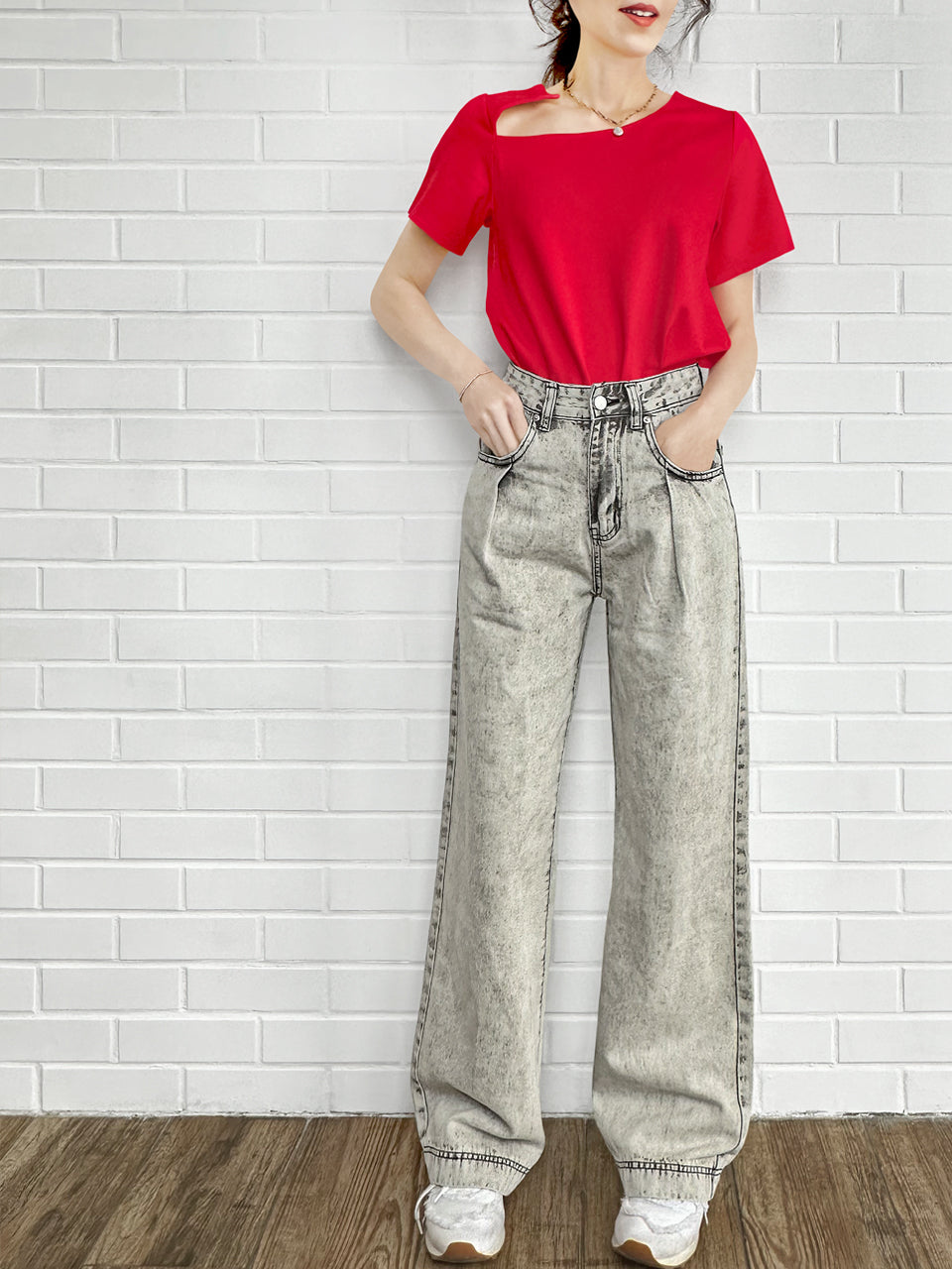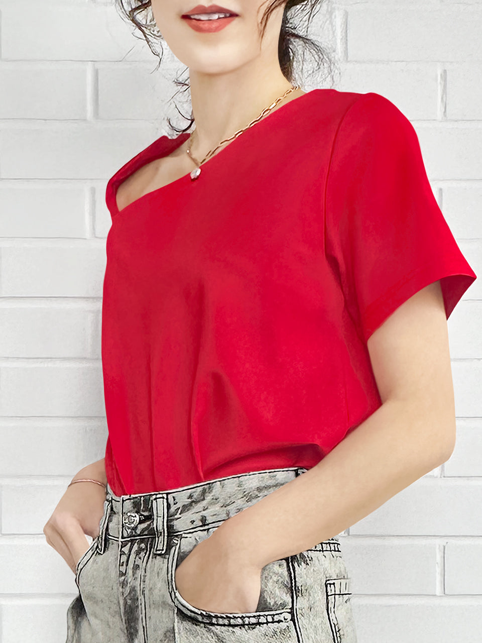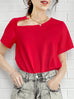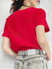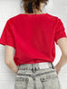 紅色鏤空領結構棉混紡 T 卹