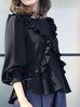 鏤空鑲嵌、飄逸荷葉邊和鏤空飾邊為這款飄逸袖子優雅襯衫增添了波西米亞浪漫氣息