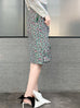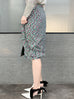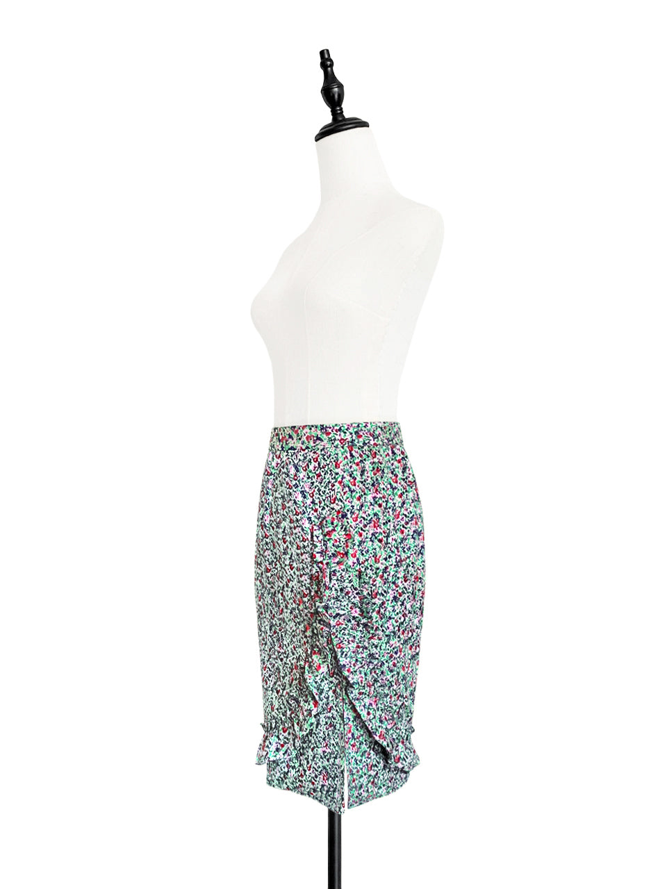 驚喜促銷!綠色提花花朵荷葉邊開衩鉛筆裙
