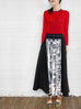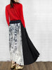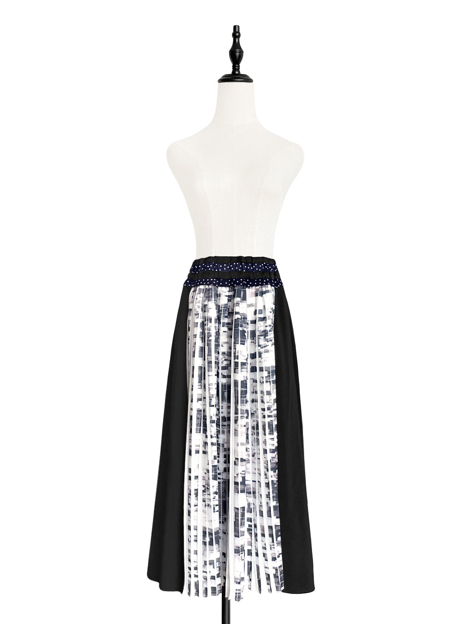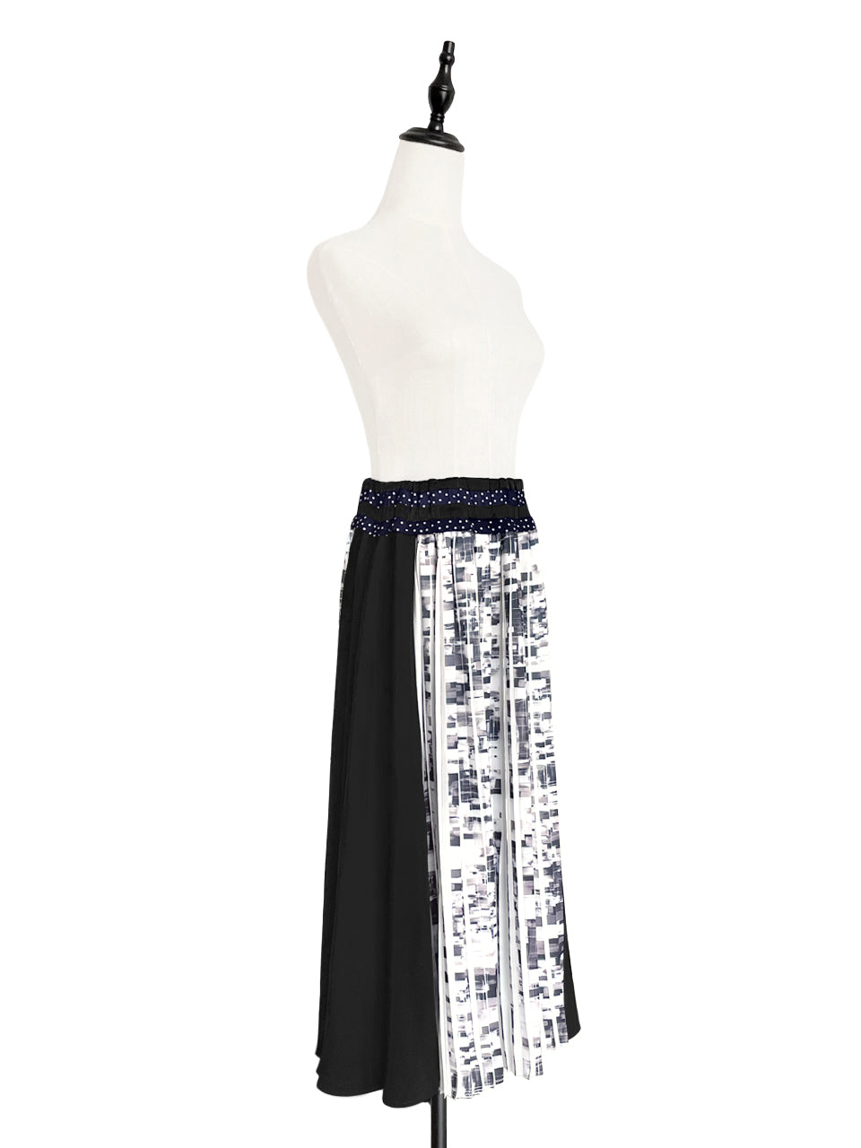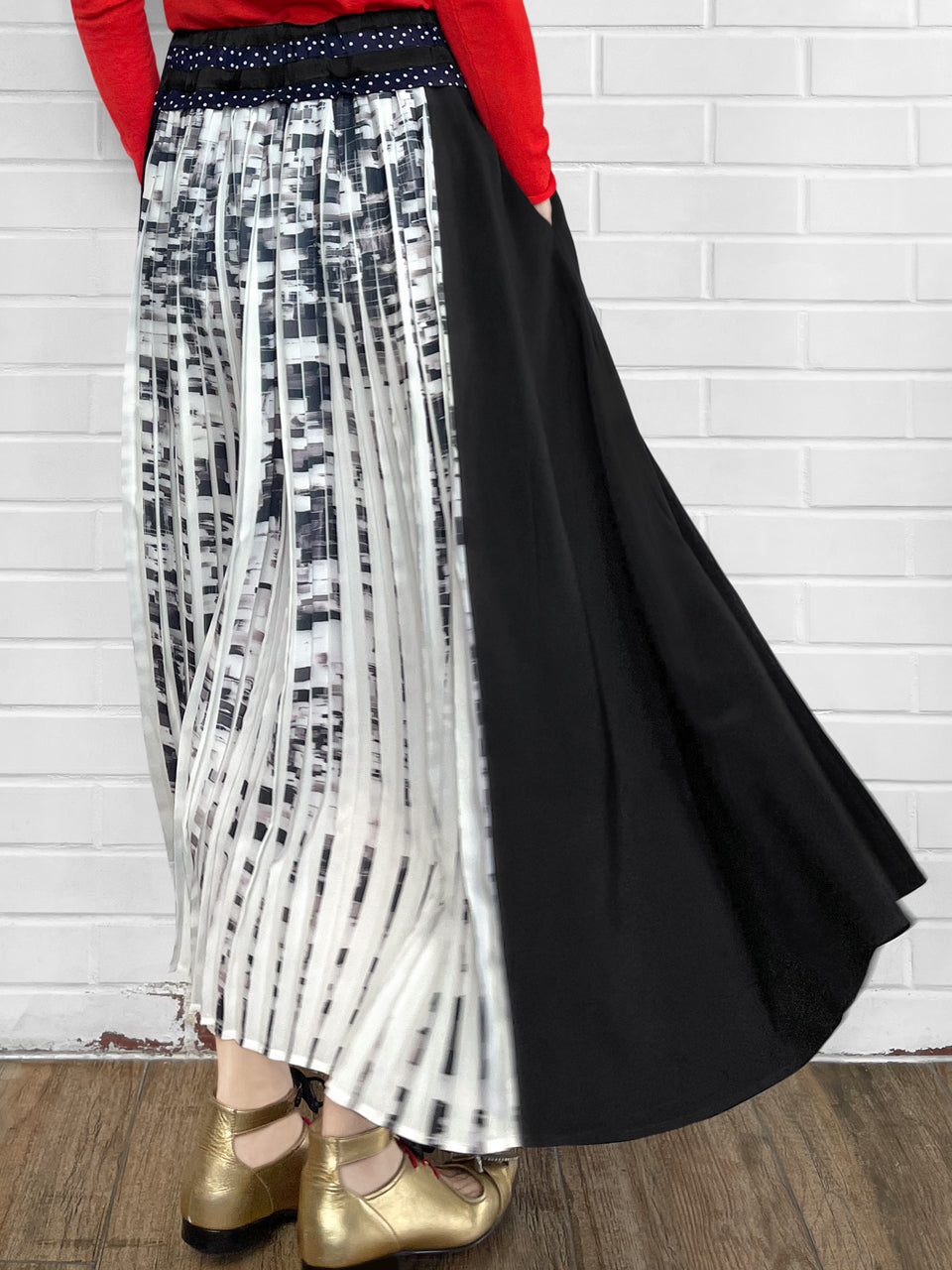 驚喜促銷!混合材質正面和背面褶皺中長半身裙