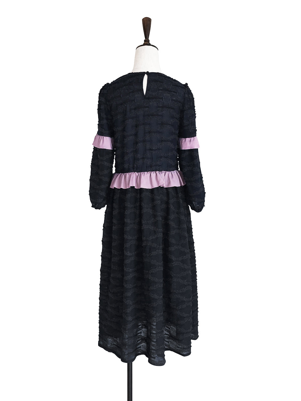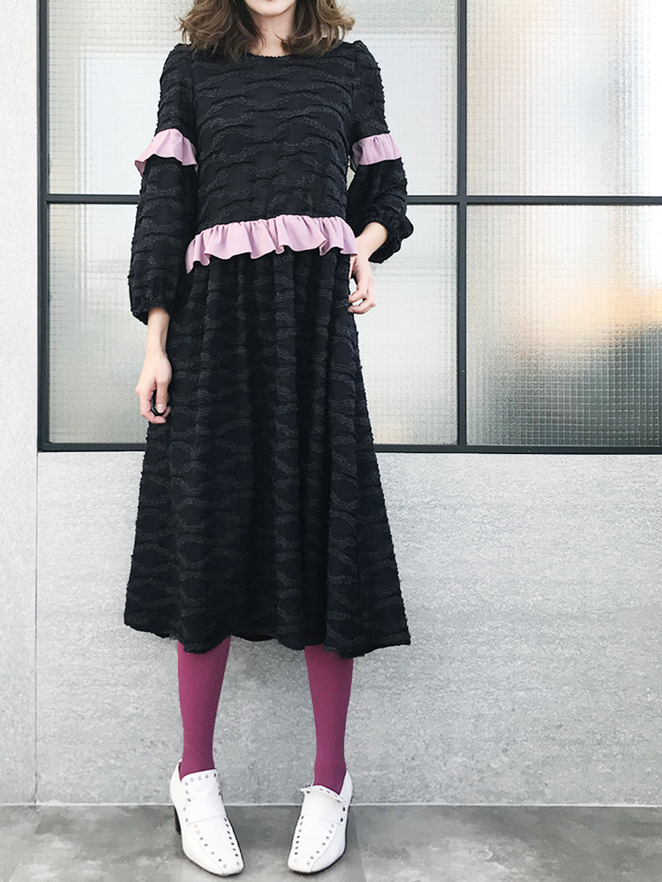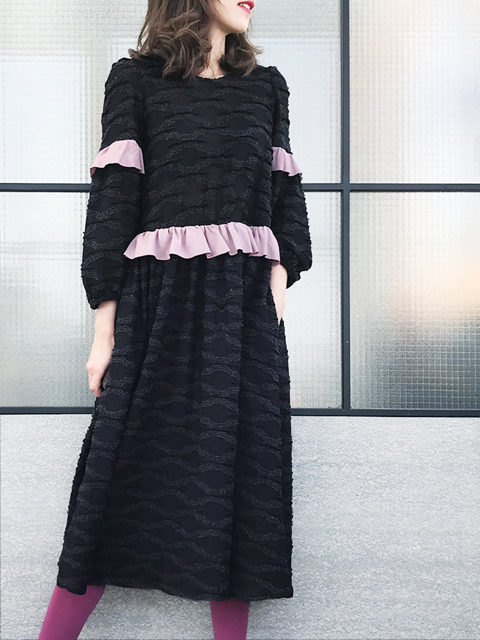 最後的機會!紋理針織寬鬆袖荷葉邊連身裙
