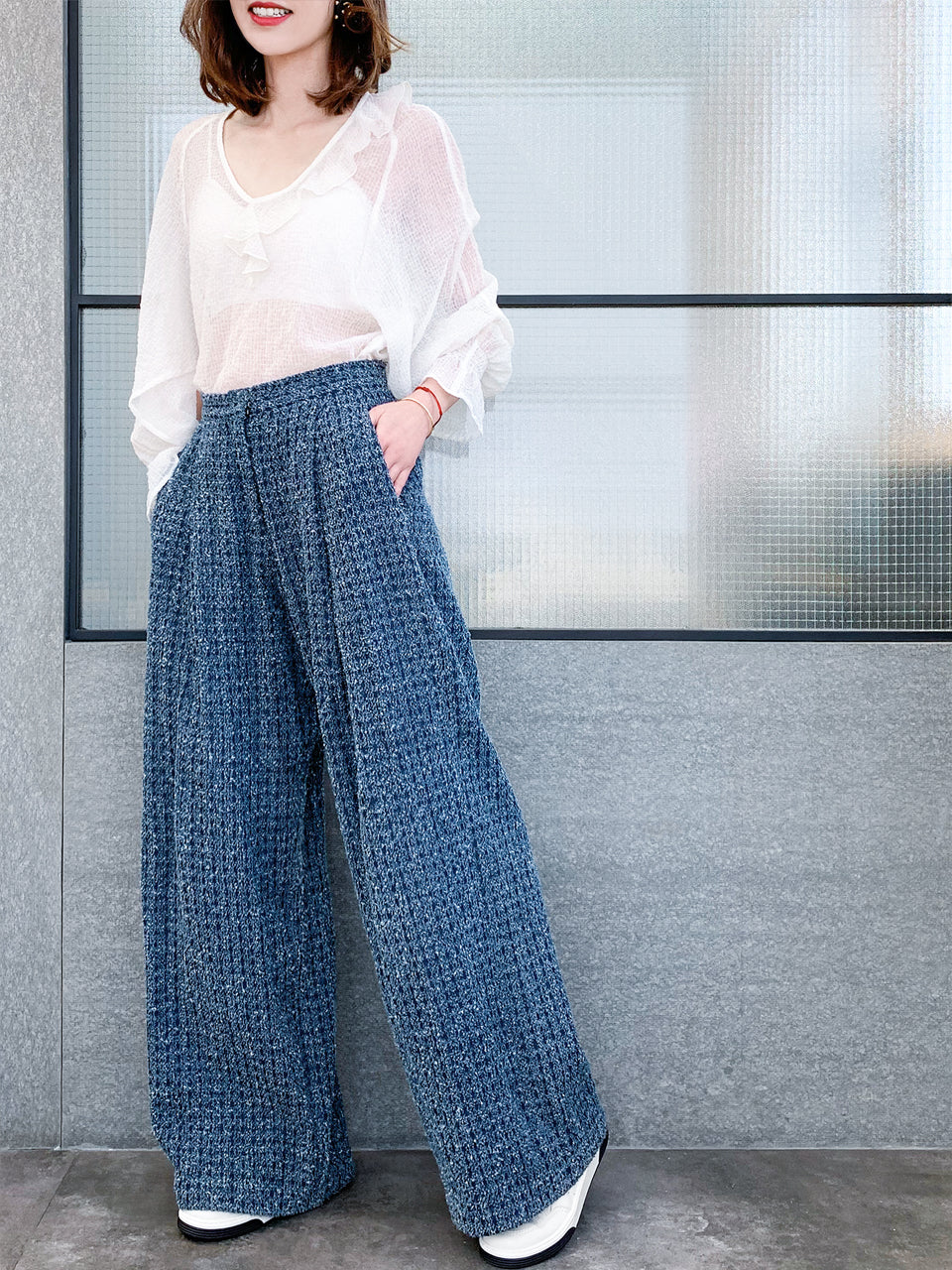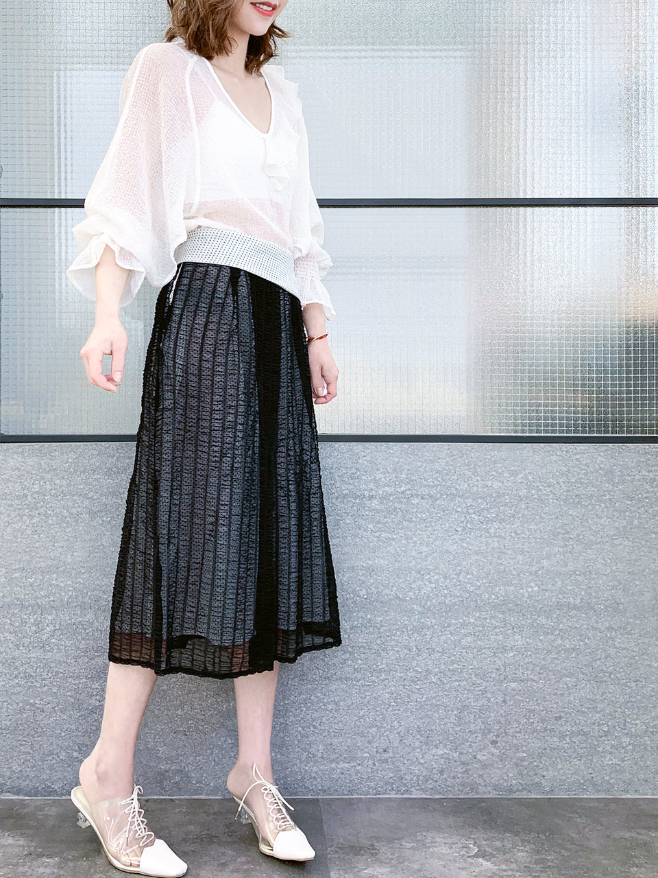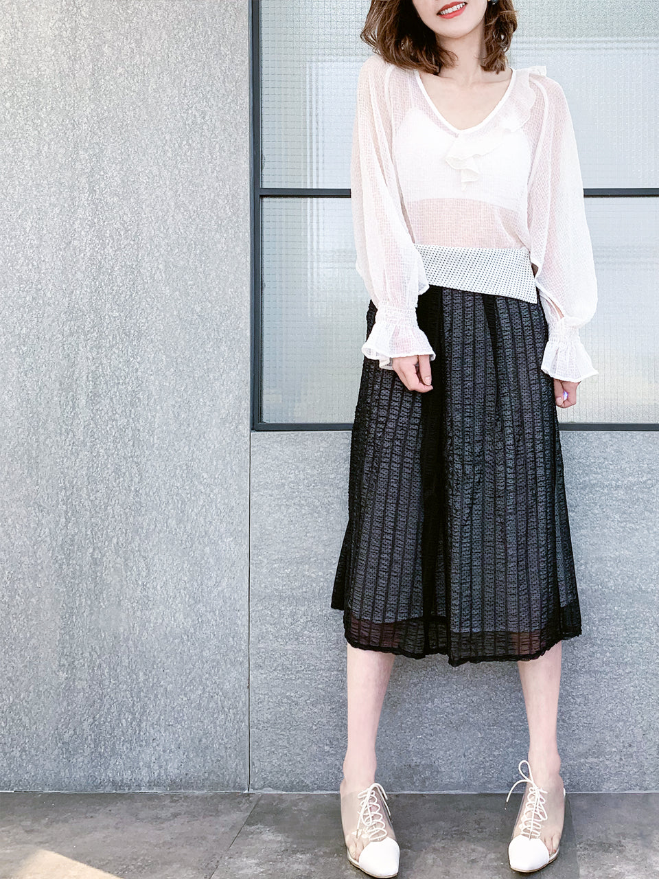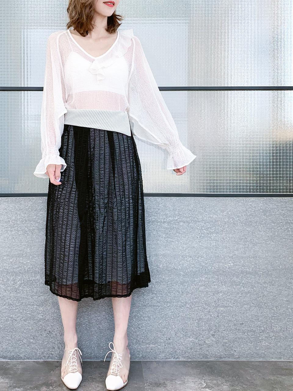 有質感的方形圖案襯衫增添了甜美的風格點,如縮褶荷葉邊袖口和固定開衩袖子,打造迷人的外觀