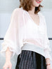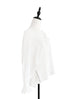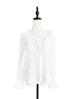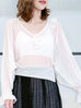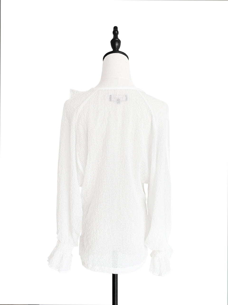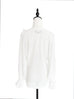 驚喜促銷!白色紋理圖案開衩袖緞面絲質荷葉邊襯衫