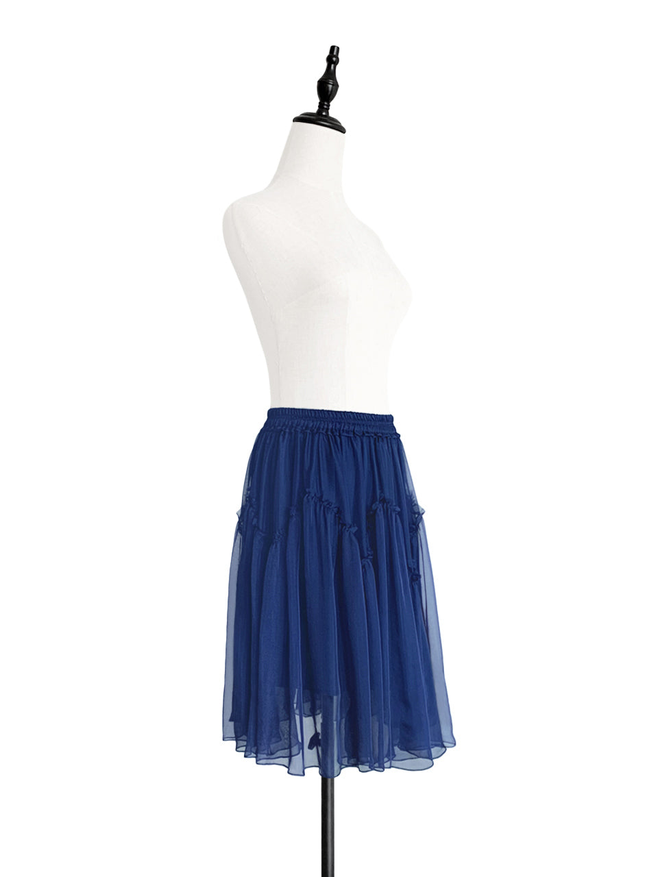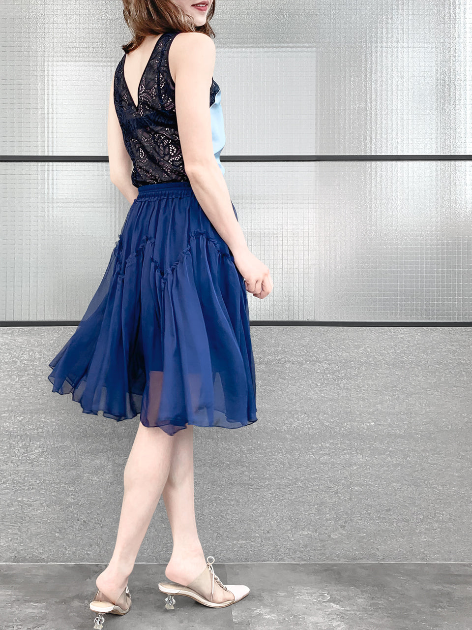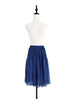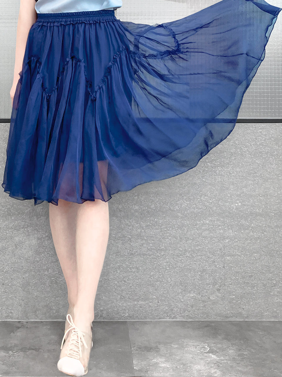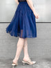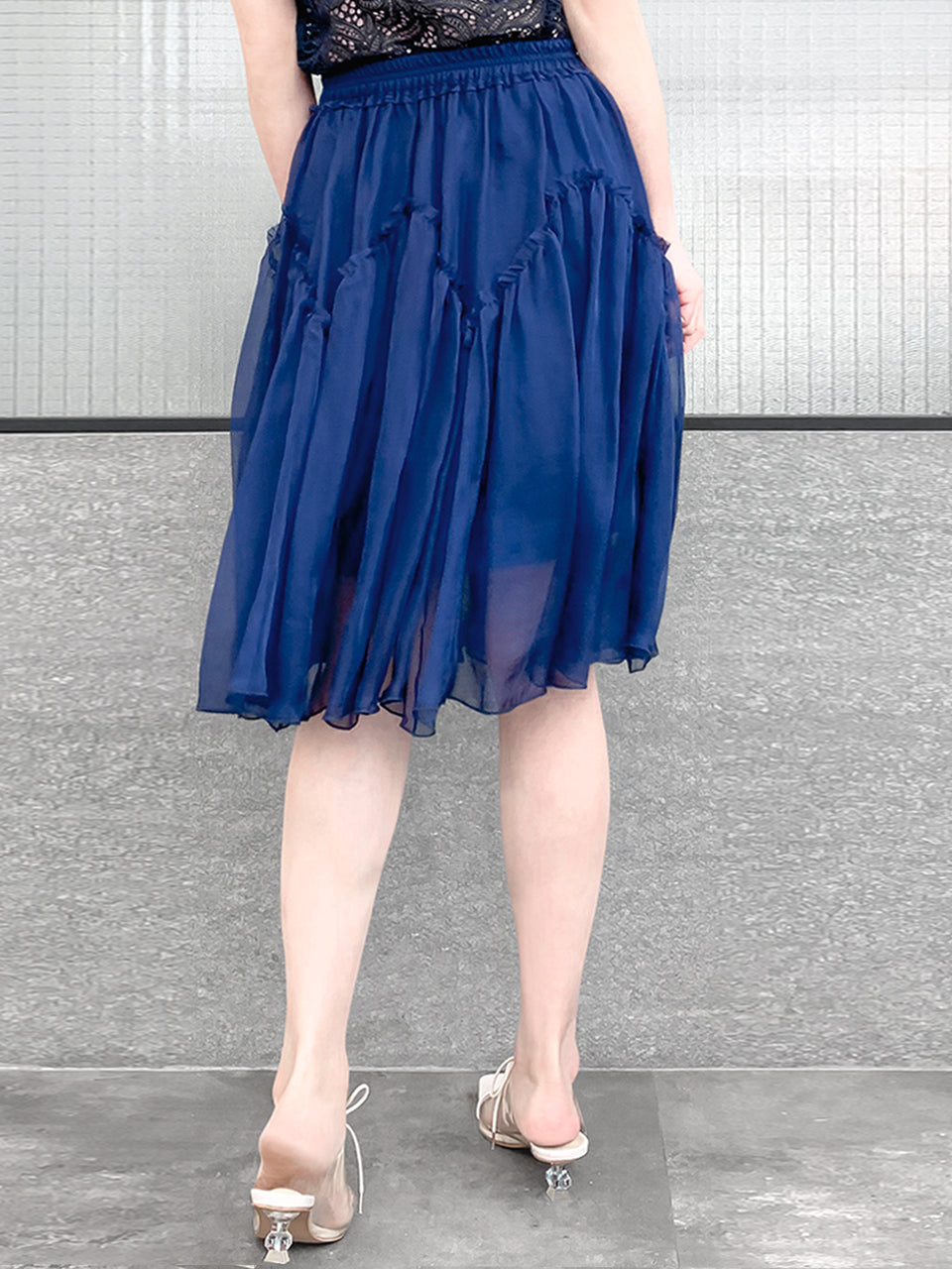 驚喜促銷!寶藍色及膝 A 字絲質荷葉邊半身裙