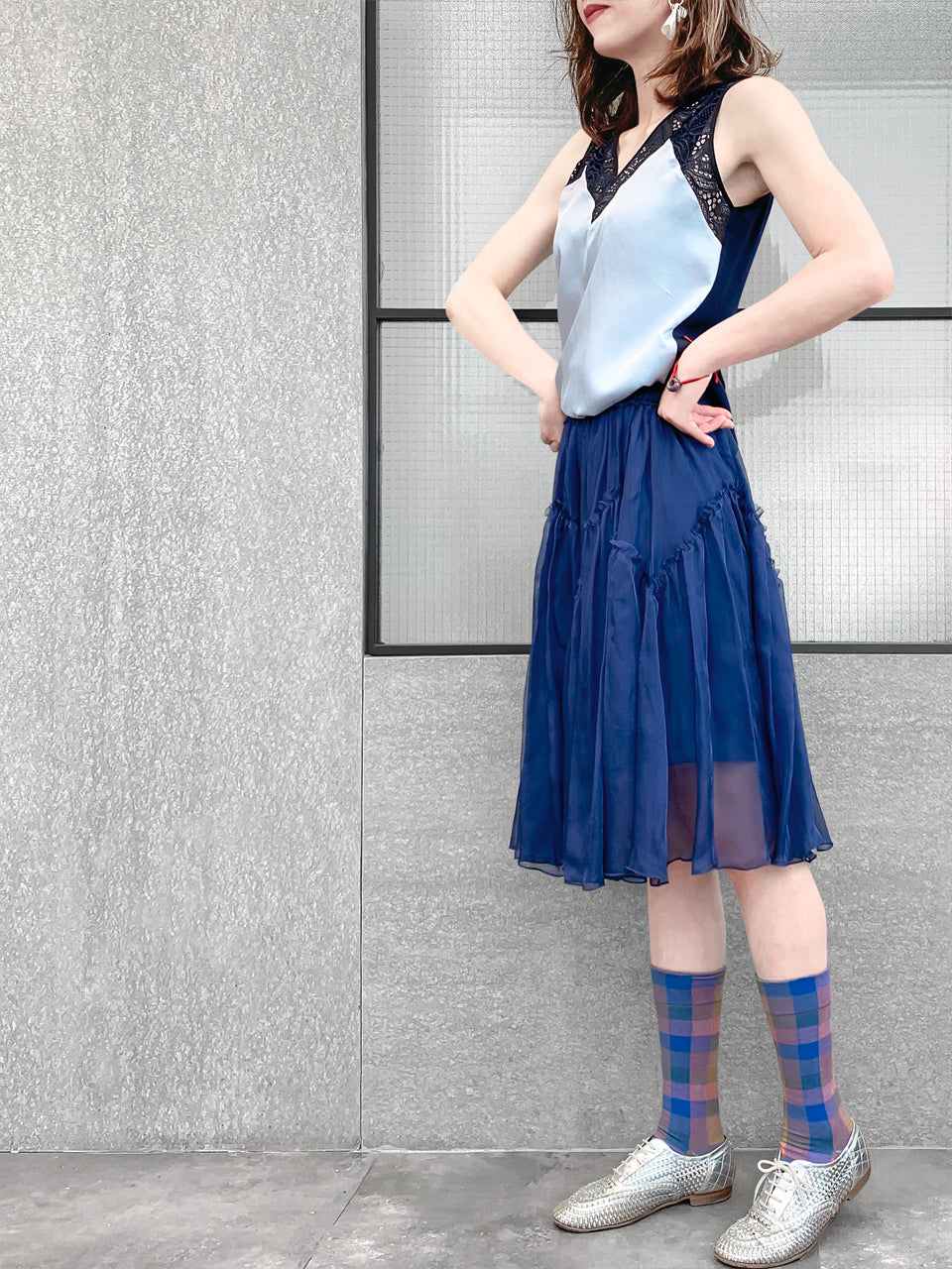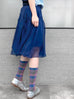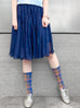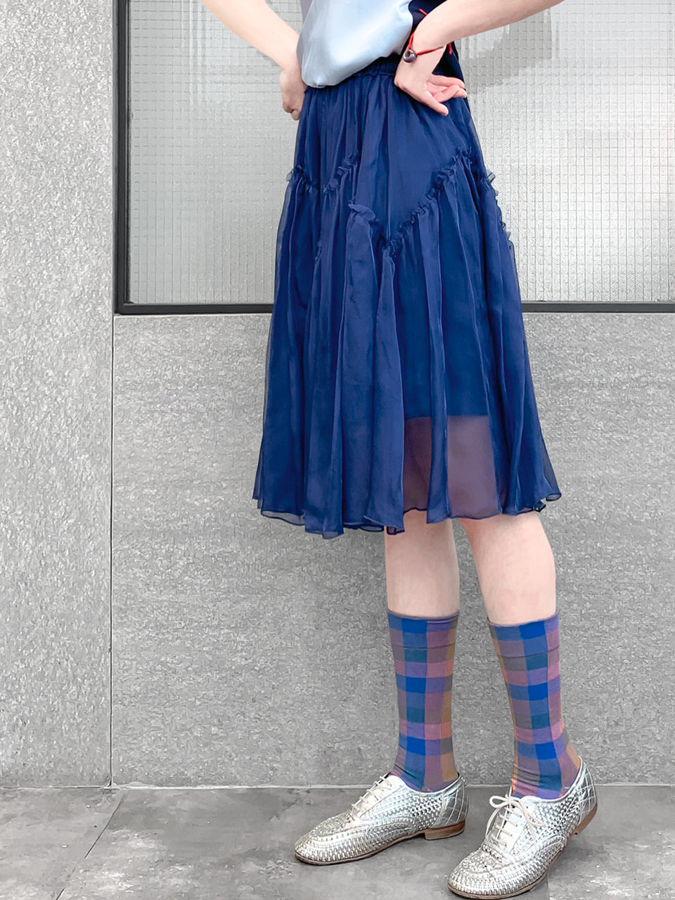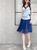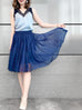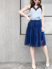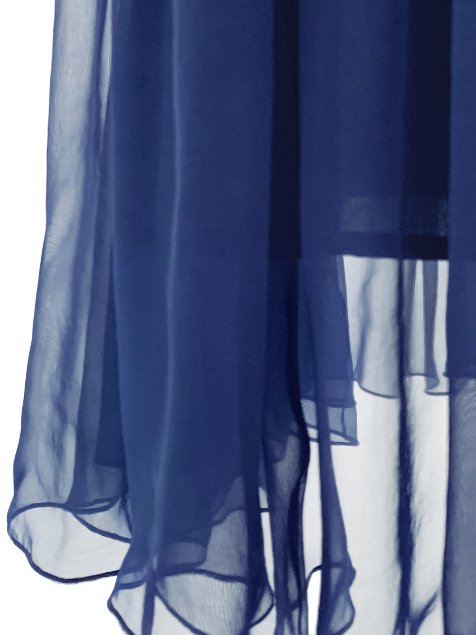 驚喜促銷!寶藍色及膝 A 字絲質荷葉邊半身裙