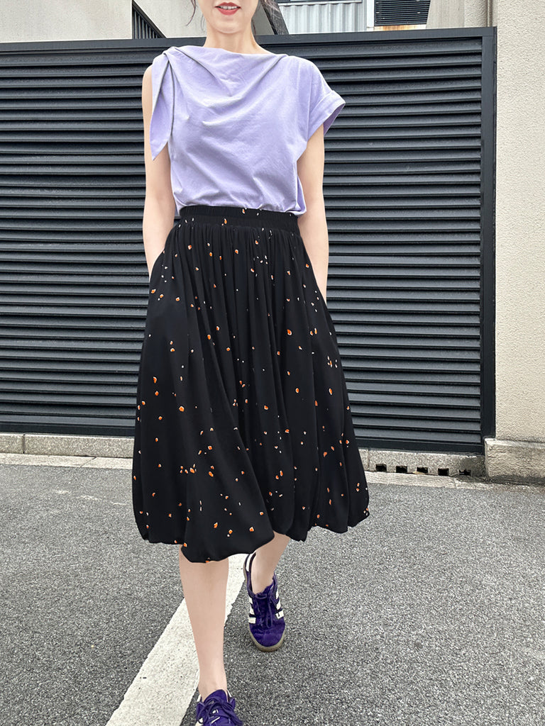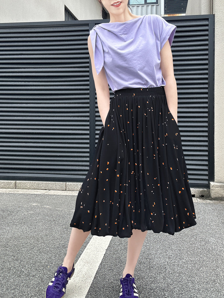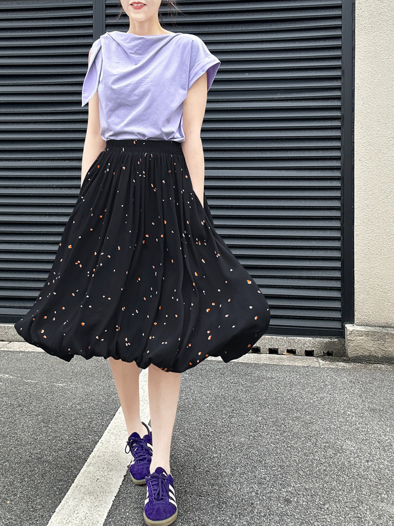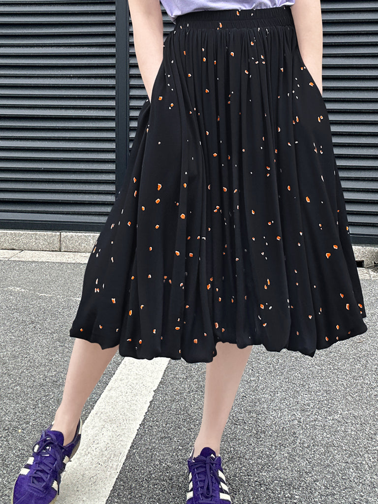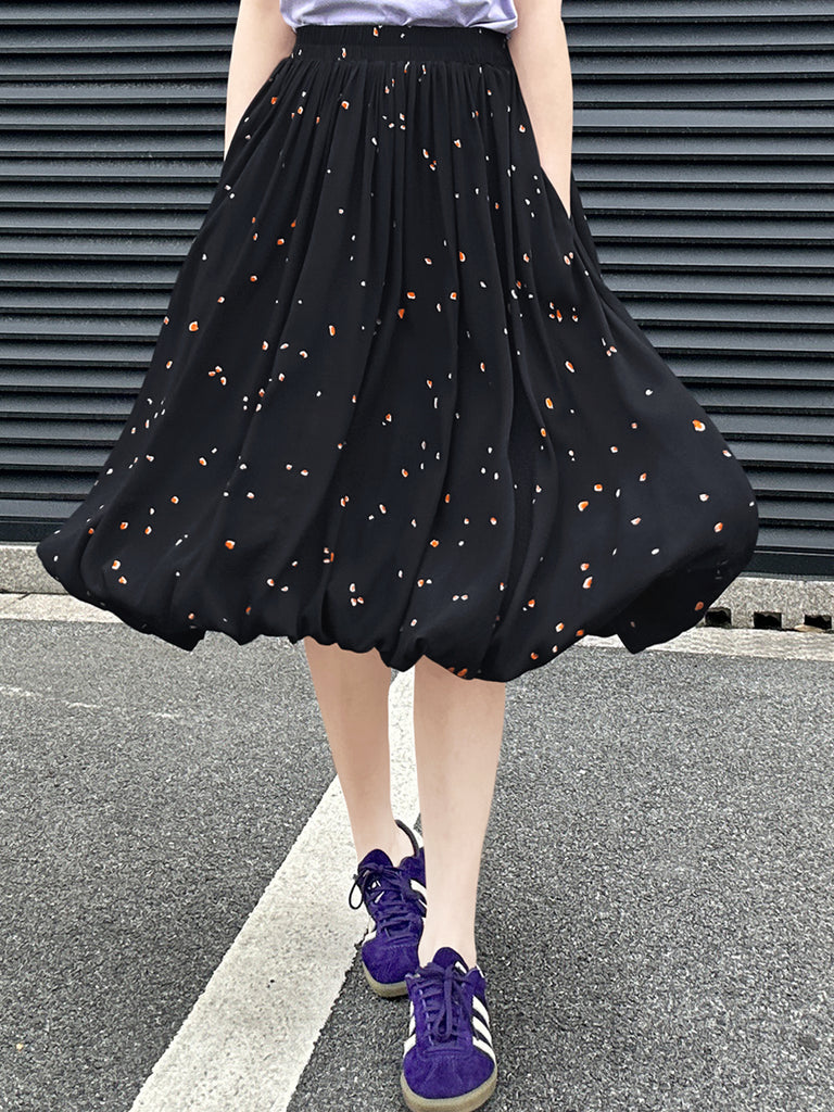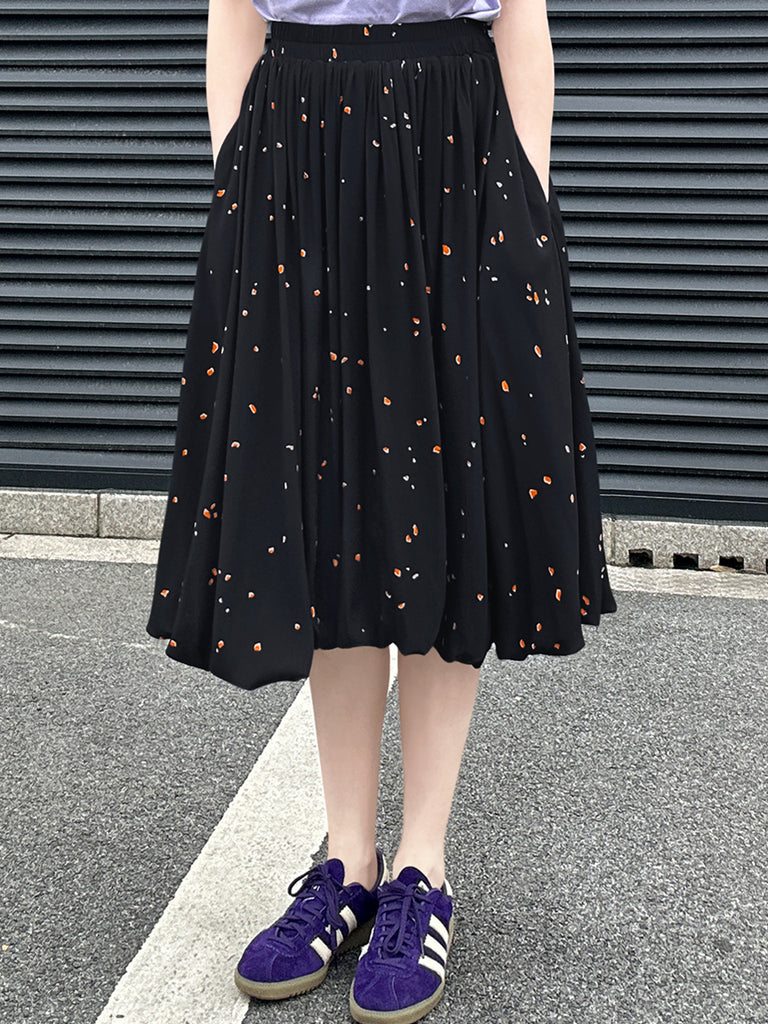混合圓點荷葉邊分層雪紡透氣超長半身裙