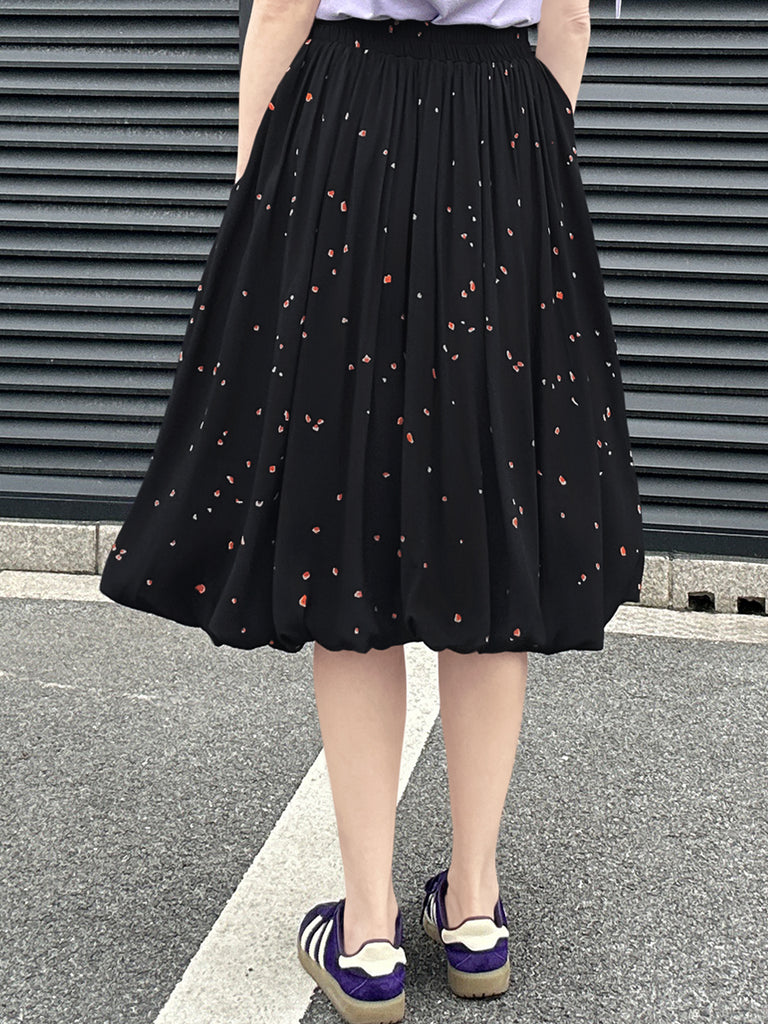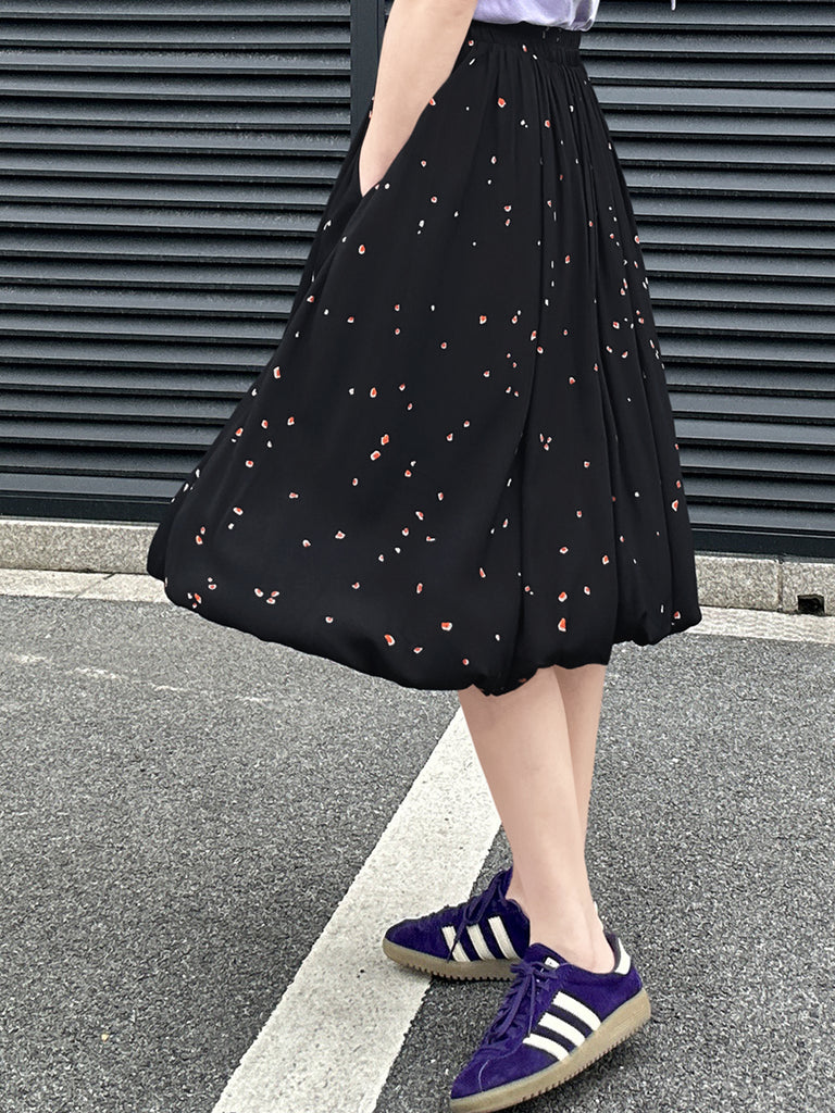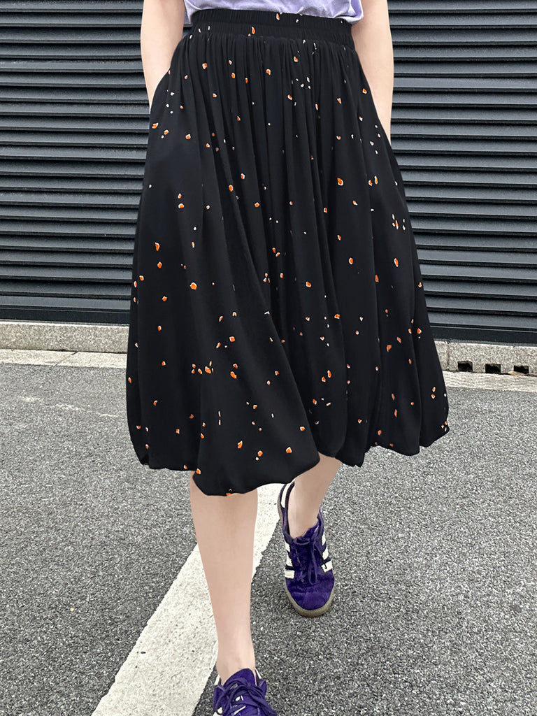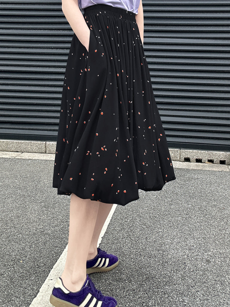 驚喜促銷!黑色漸層雛菊花園絲質羊毛半身裙