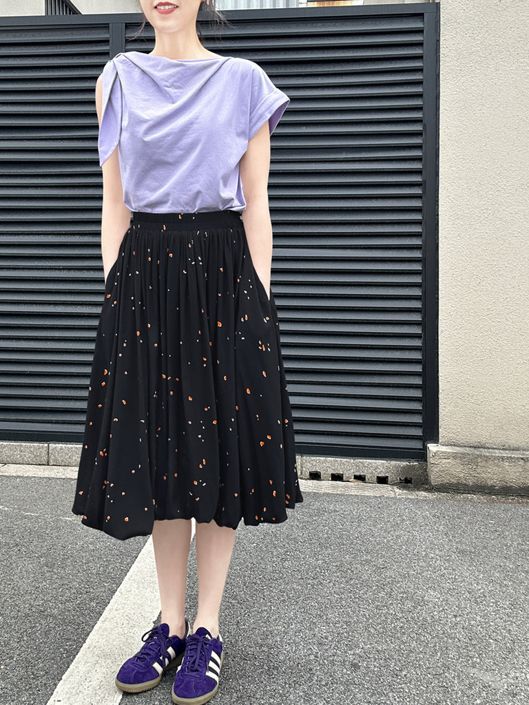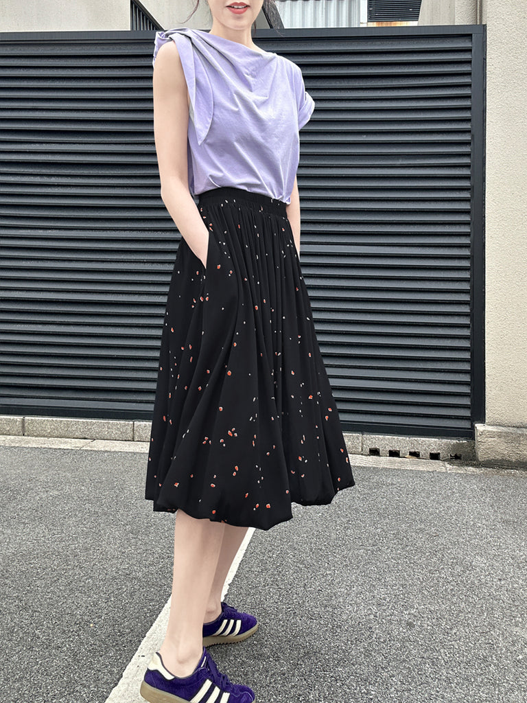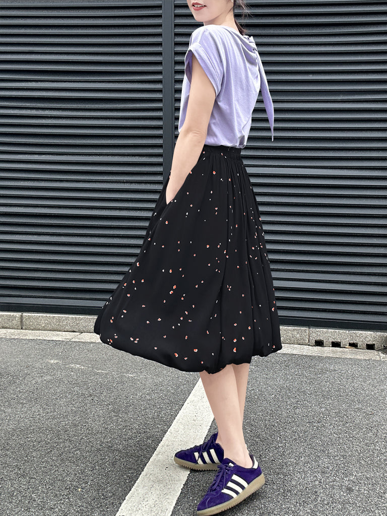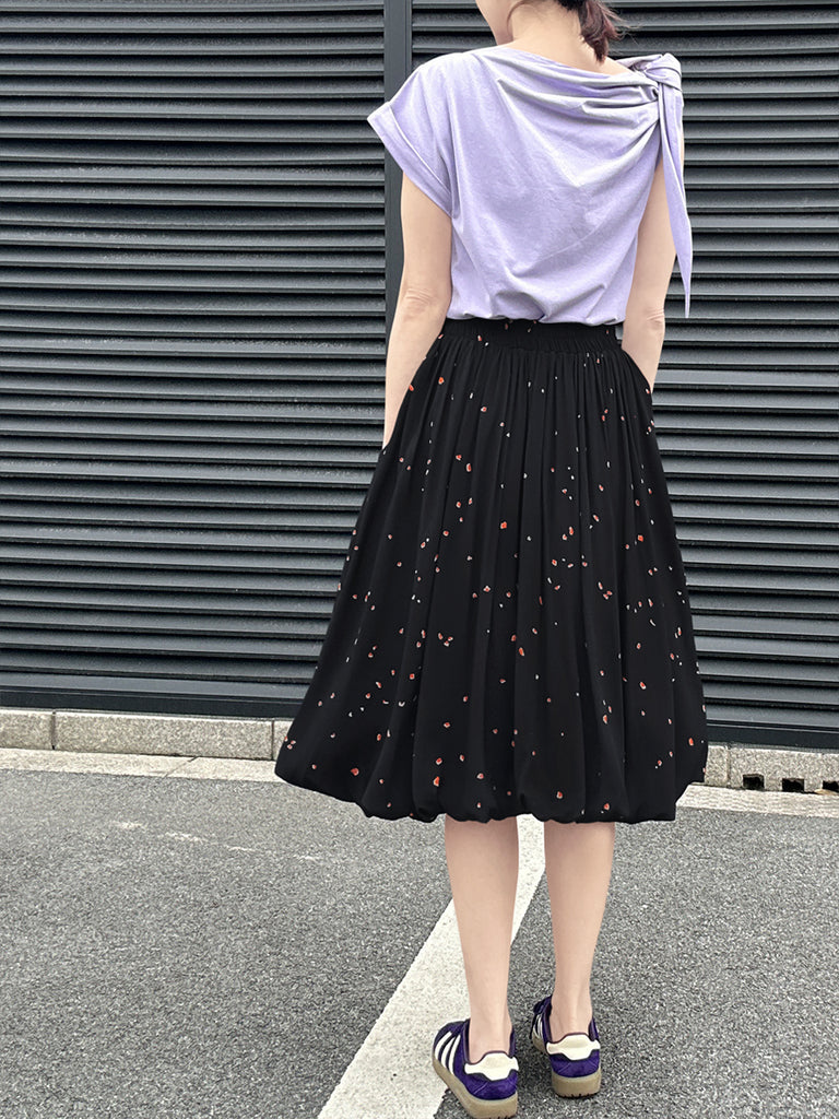 驚喜促銷!黑色漸層雛菊花園絲質羊毛半身裙