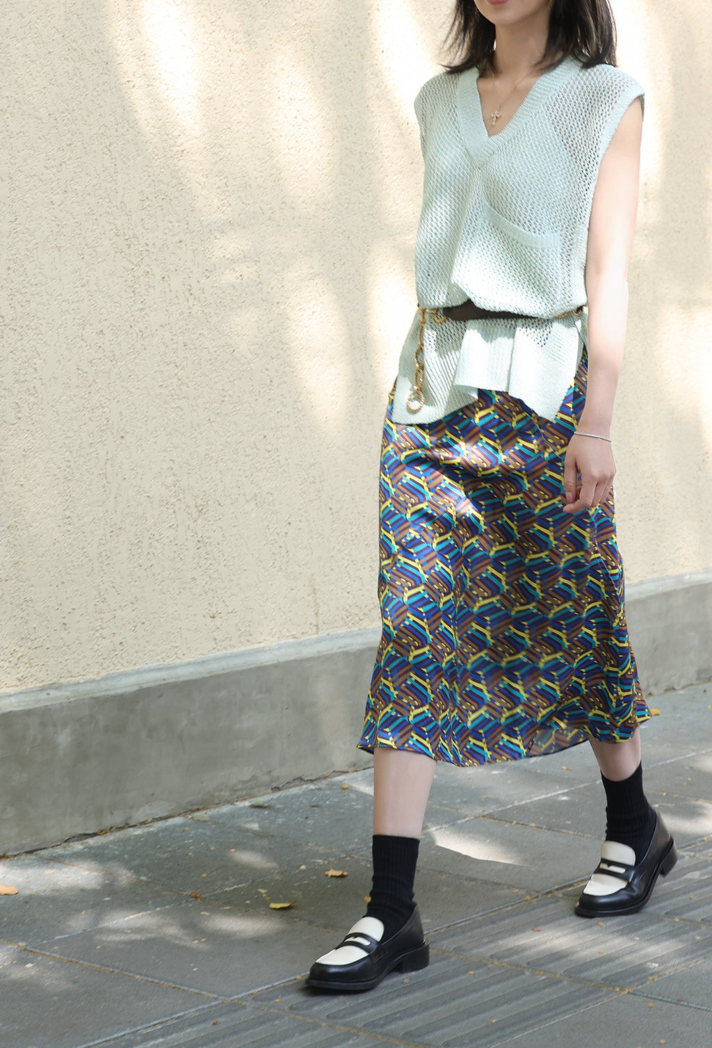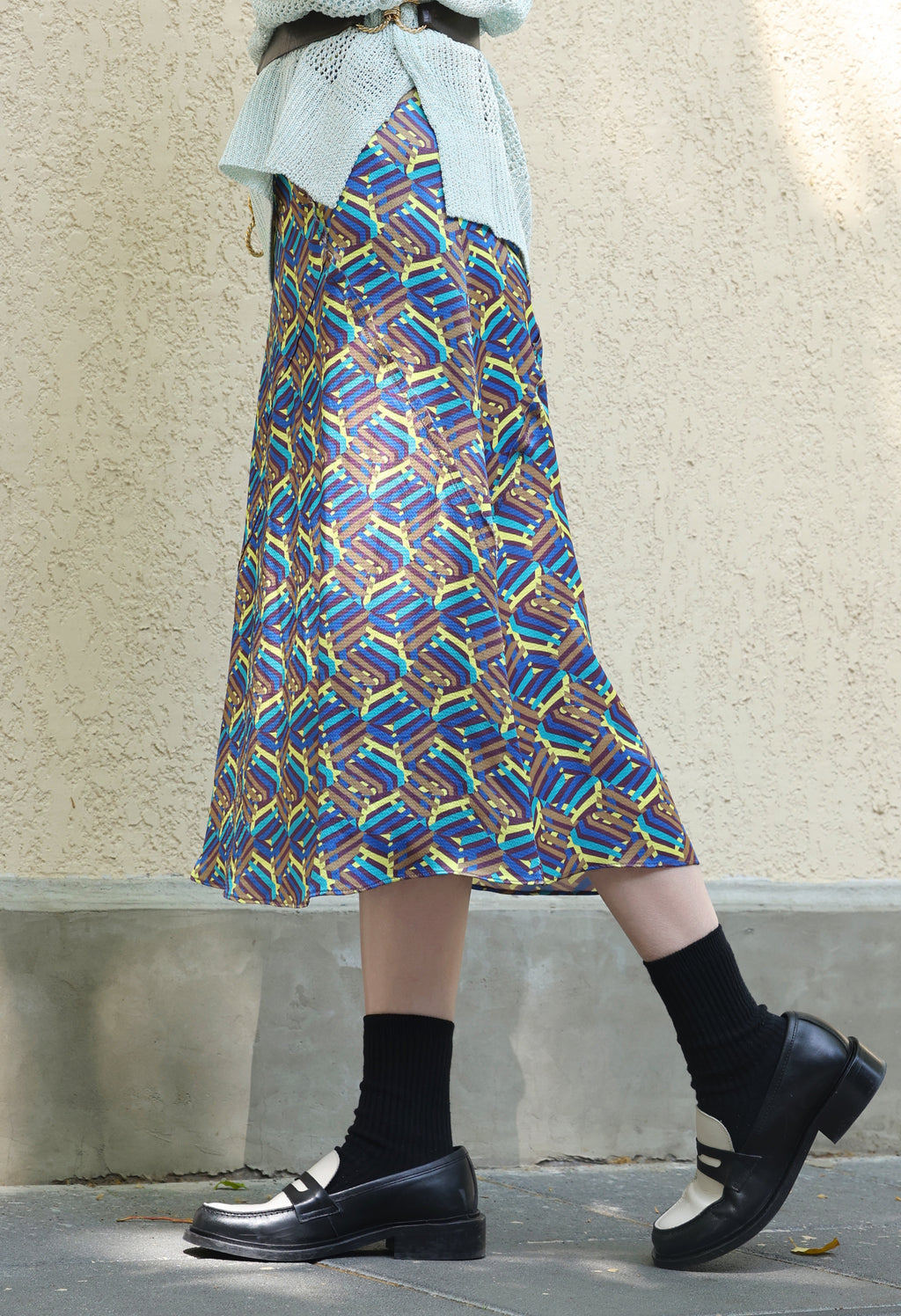 Colourful Stroke Print Layered Waist A-line Airy Midi Skirt