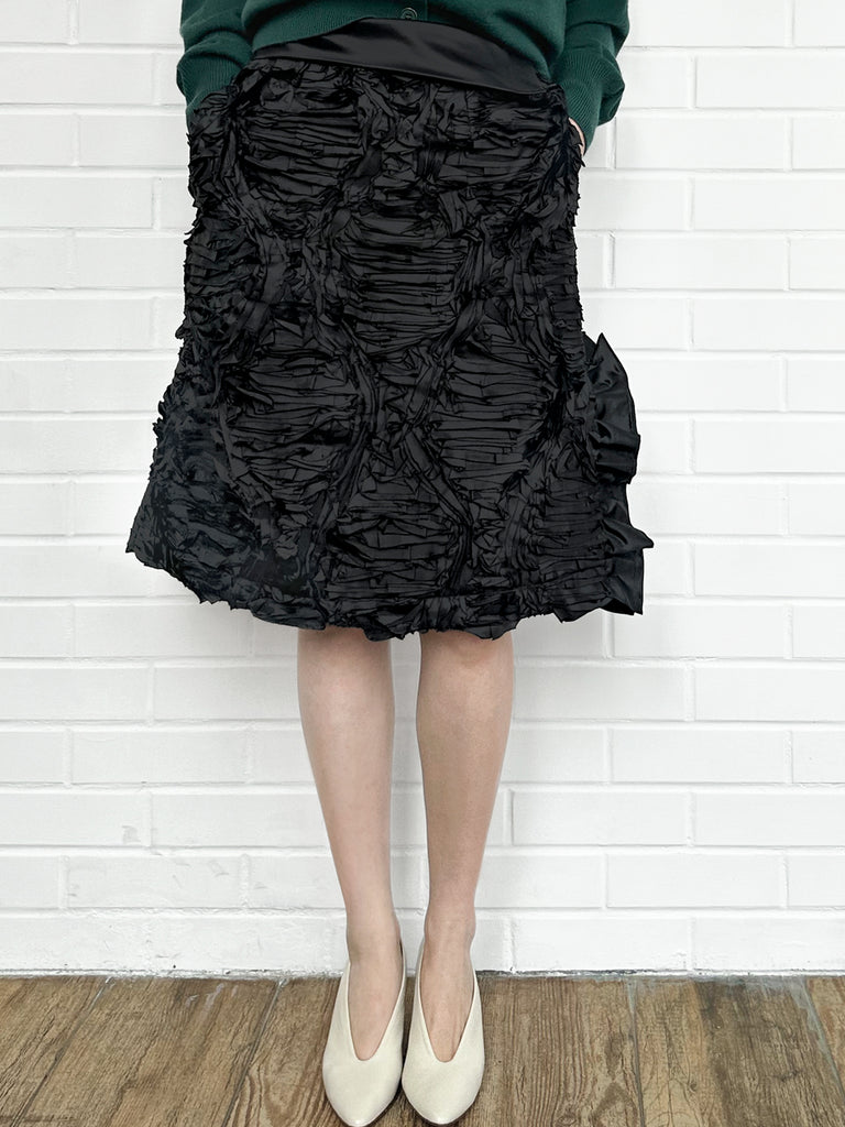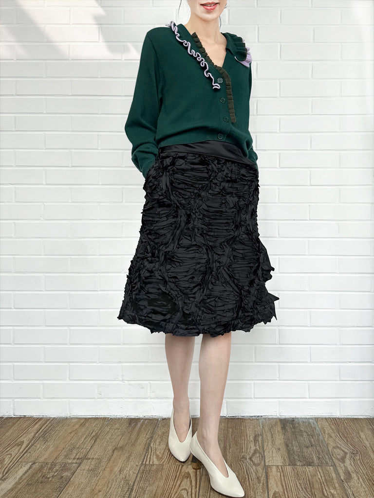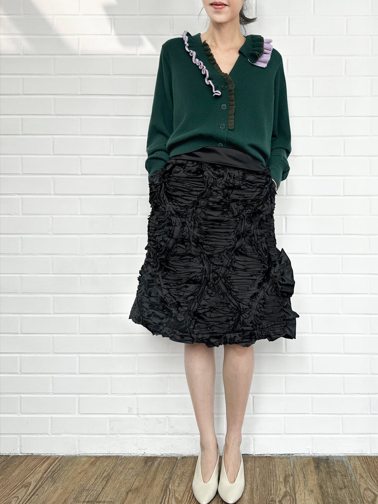 褶皺紋理折疊腰線荷葉邊側開衩A字裙