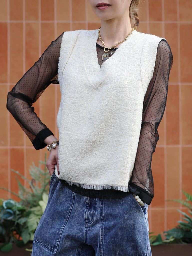 最後的機會!撞色飾邊 V 領無袖花呢上衣