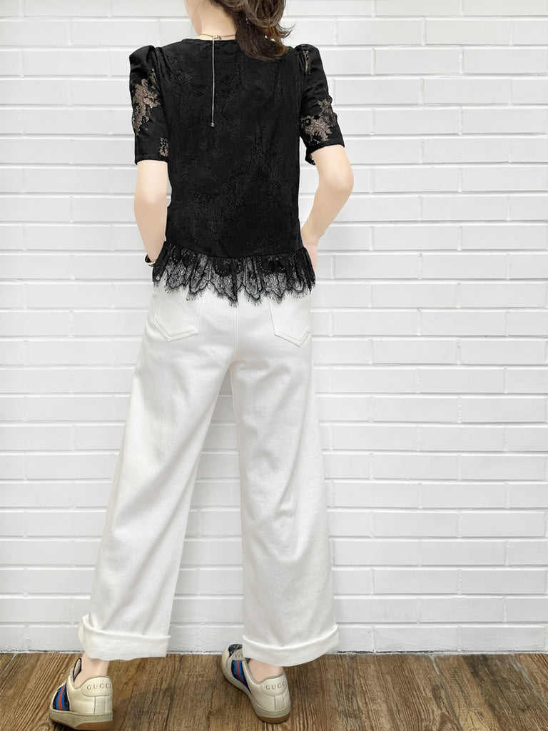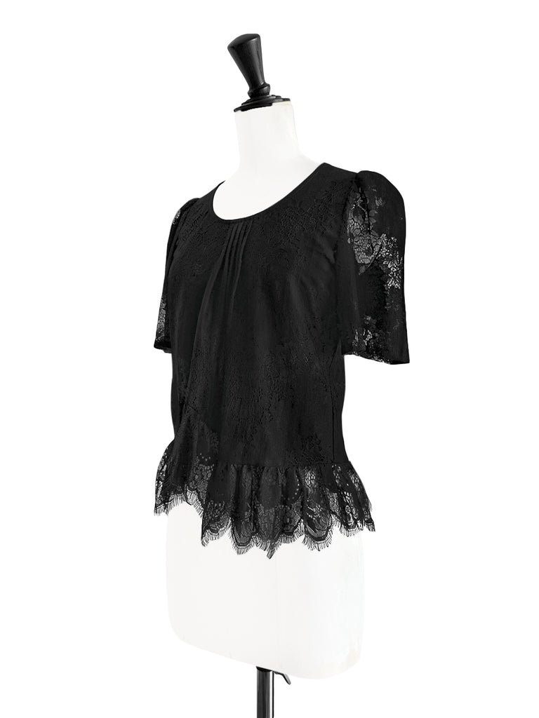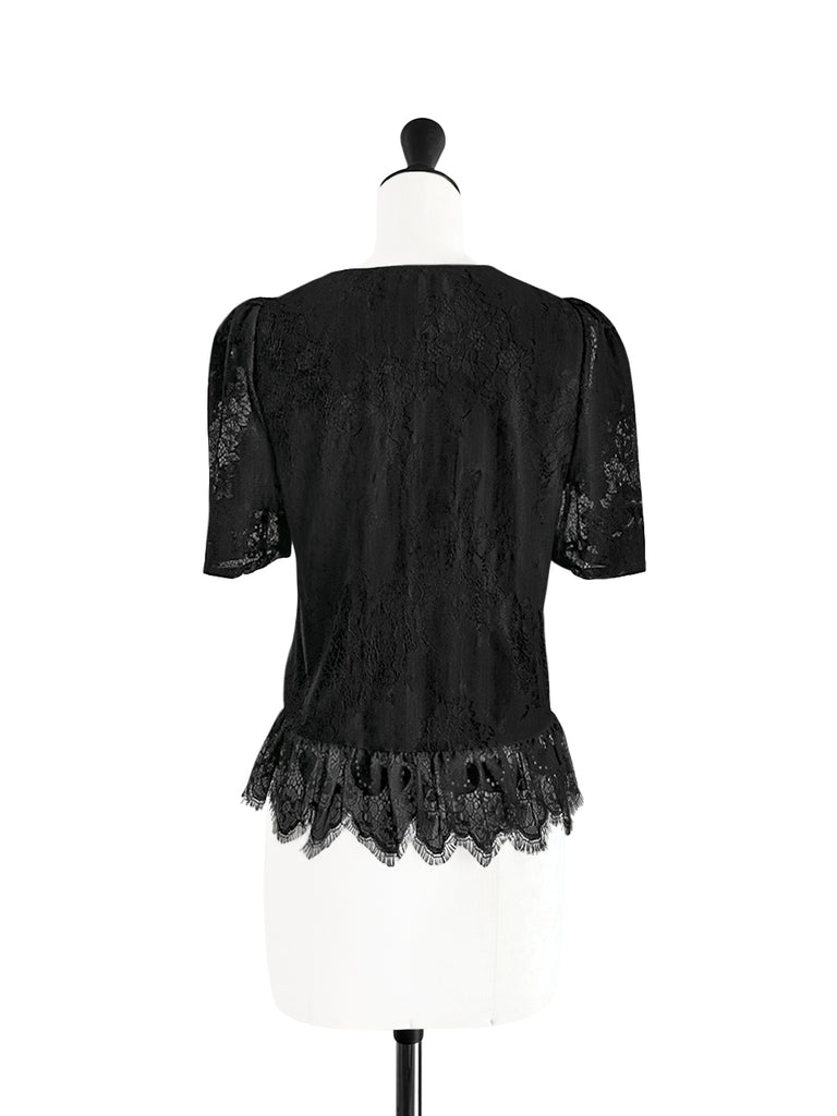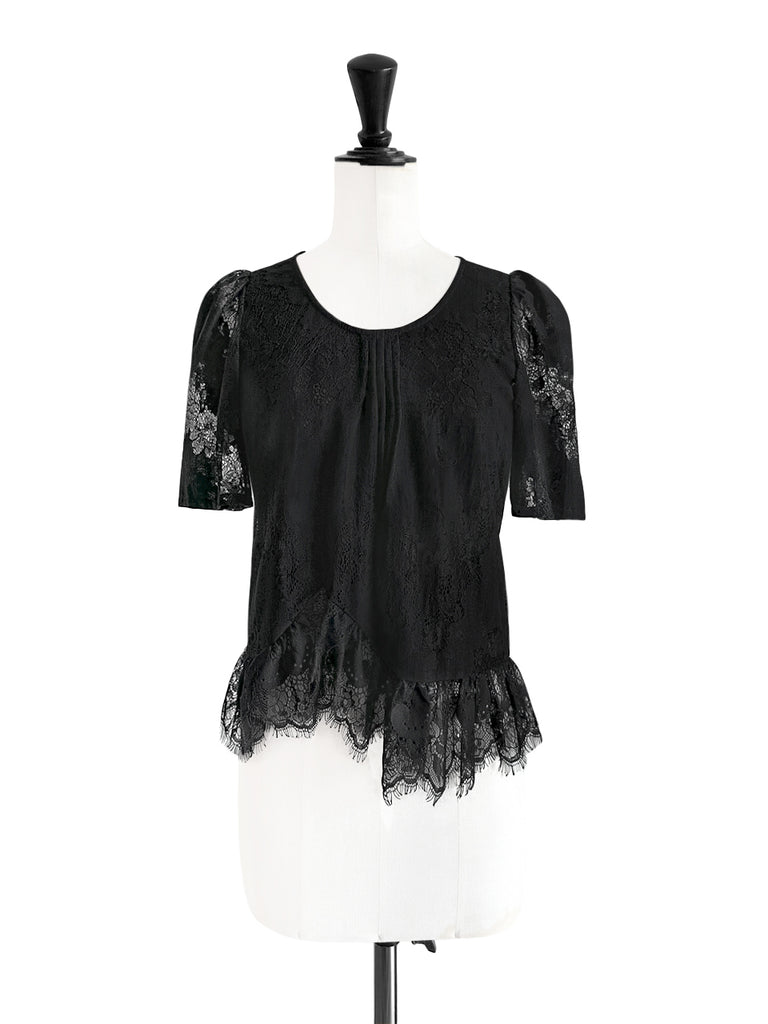 Final Sale! Black Pin Dot Eyelash Lace Collar Long Cuff Shirt