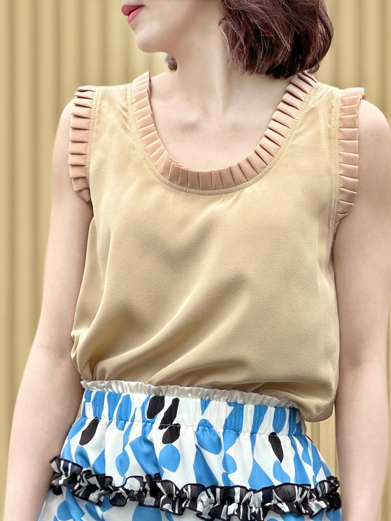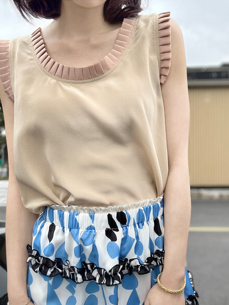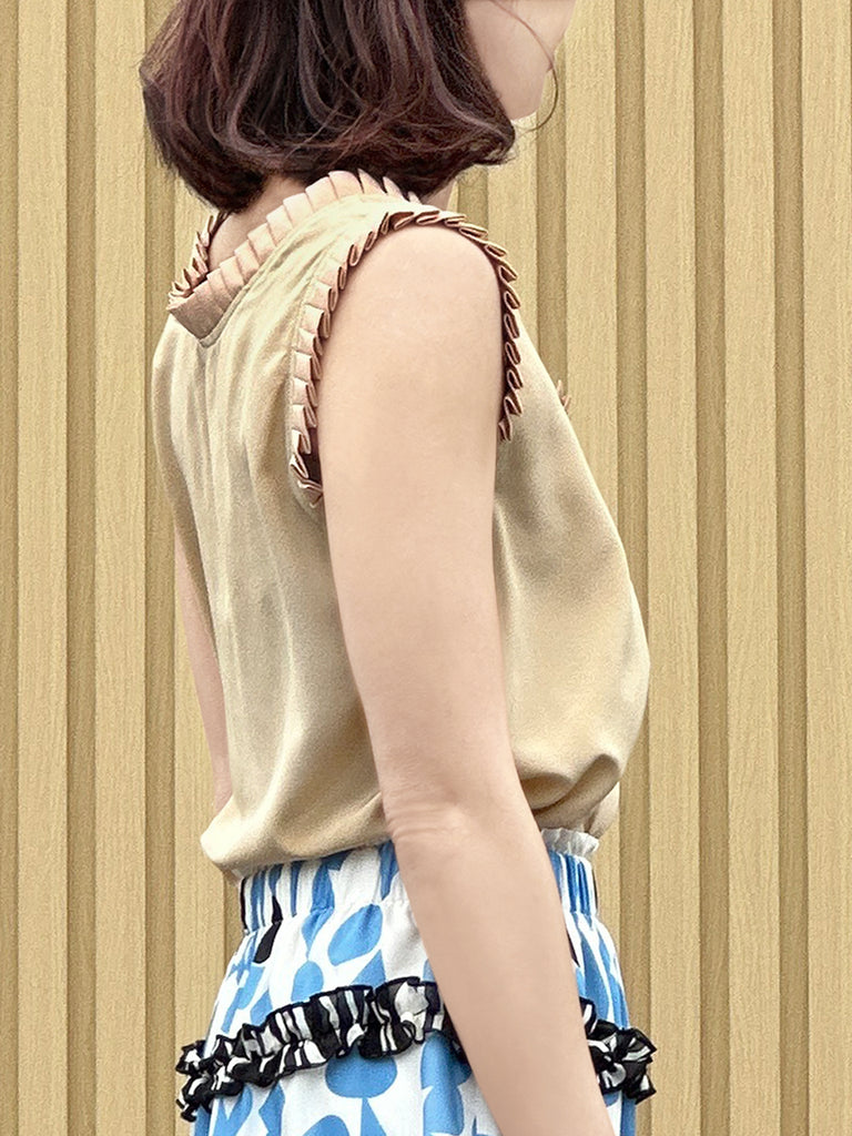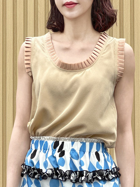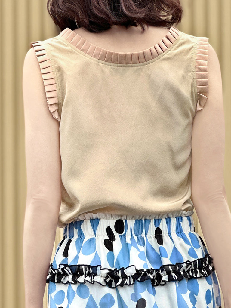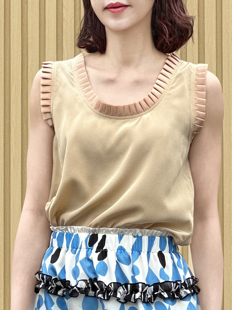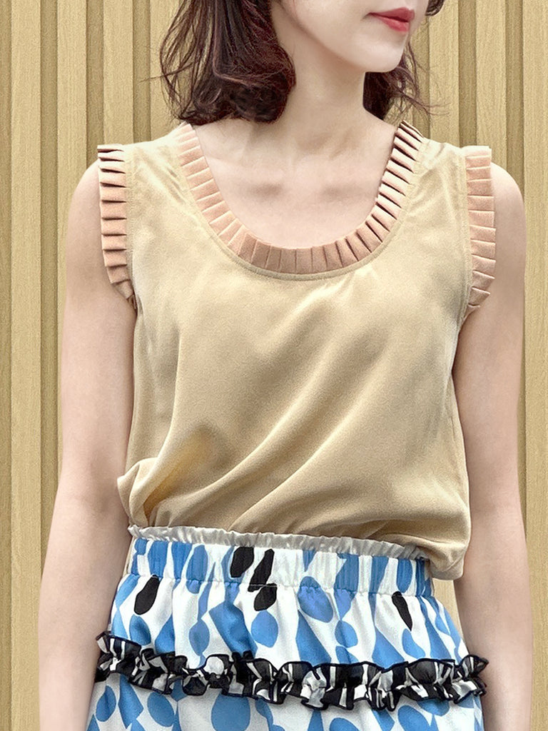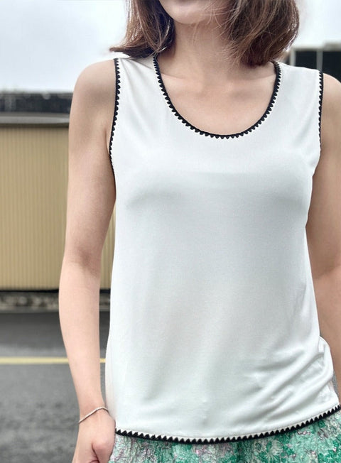 絲質白色撞色扇貝邊平紋針織背心