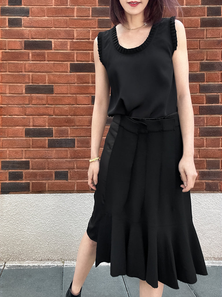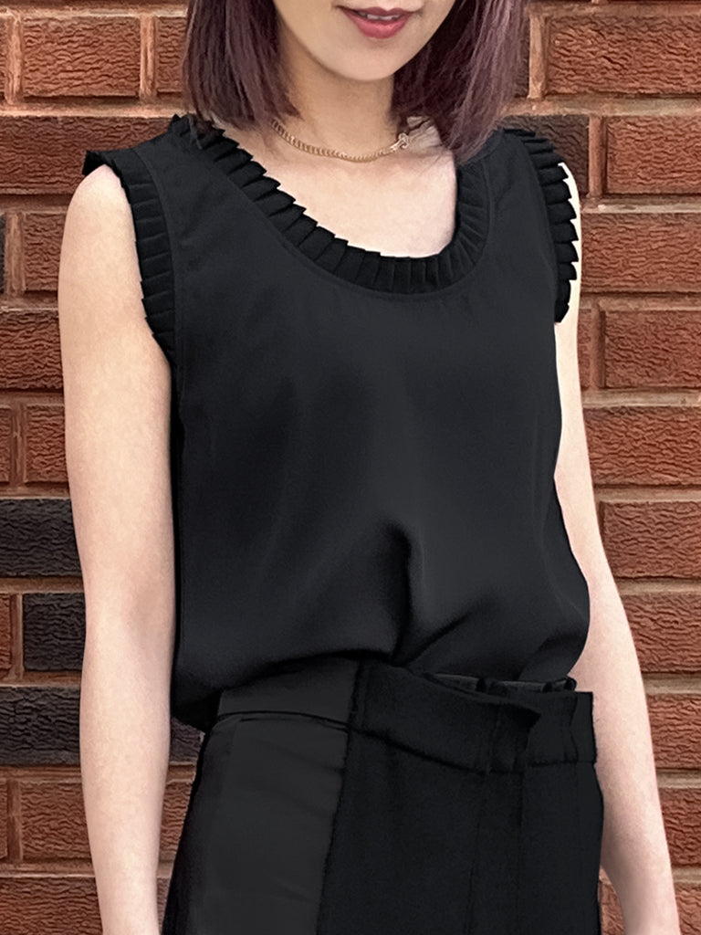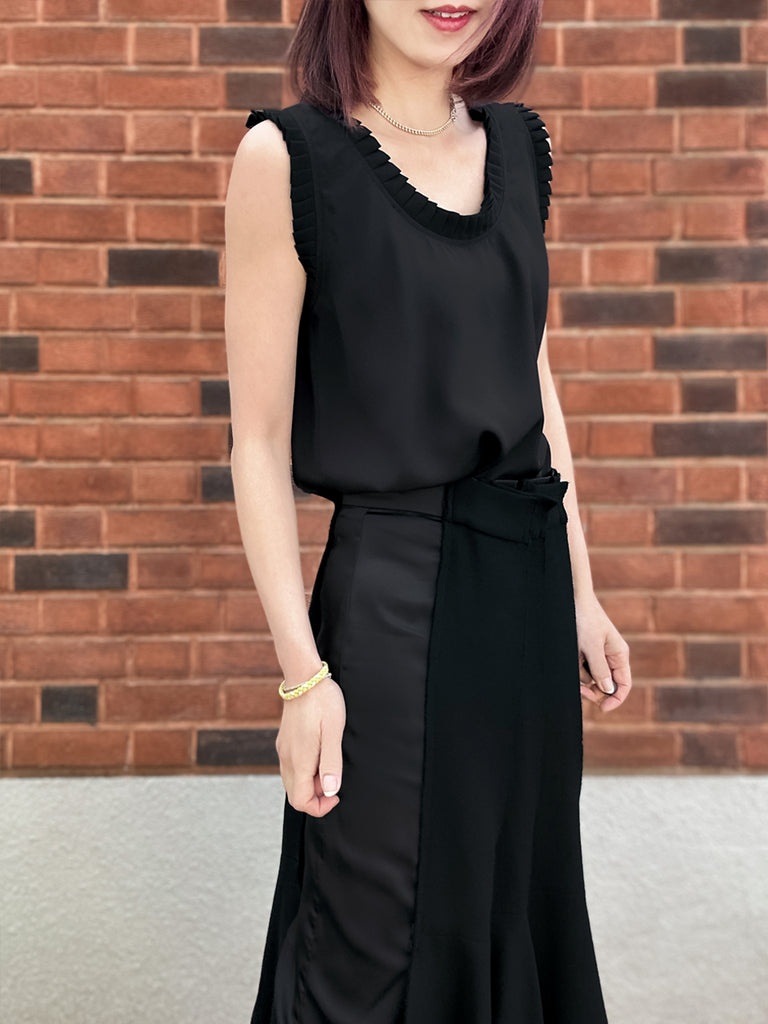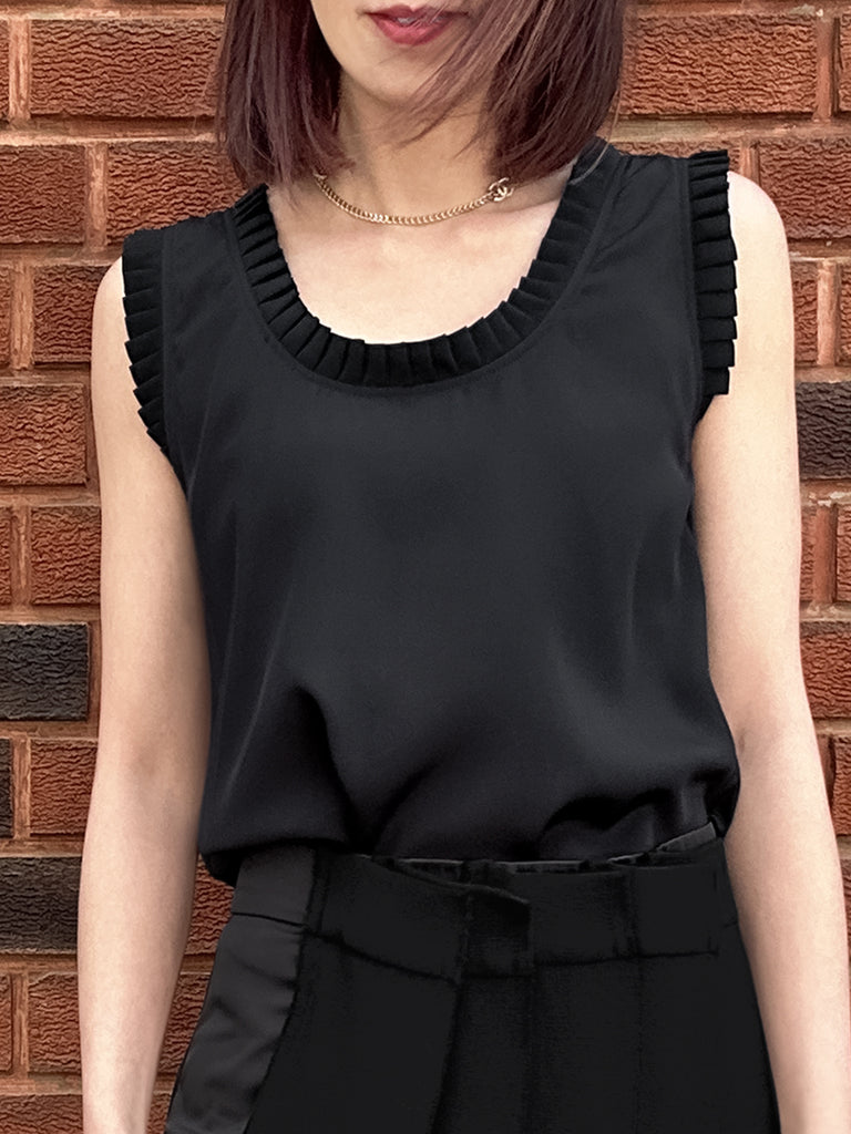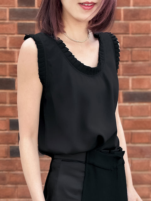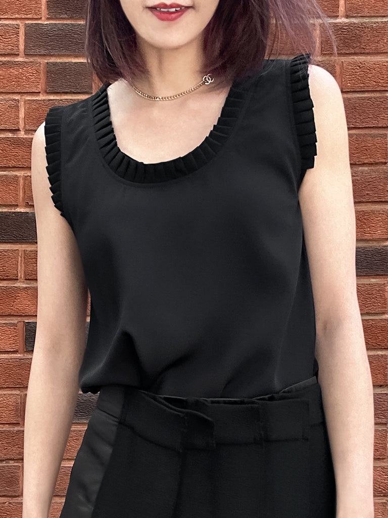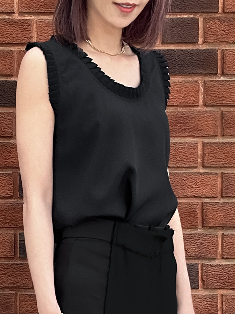 圖案黑色撞色扇貝邊平紋針織背心