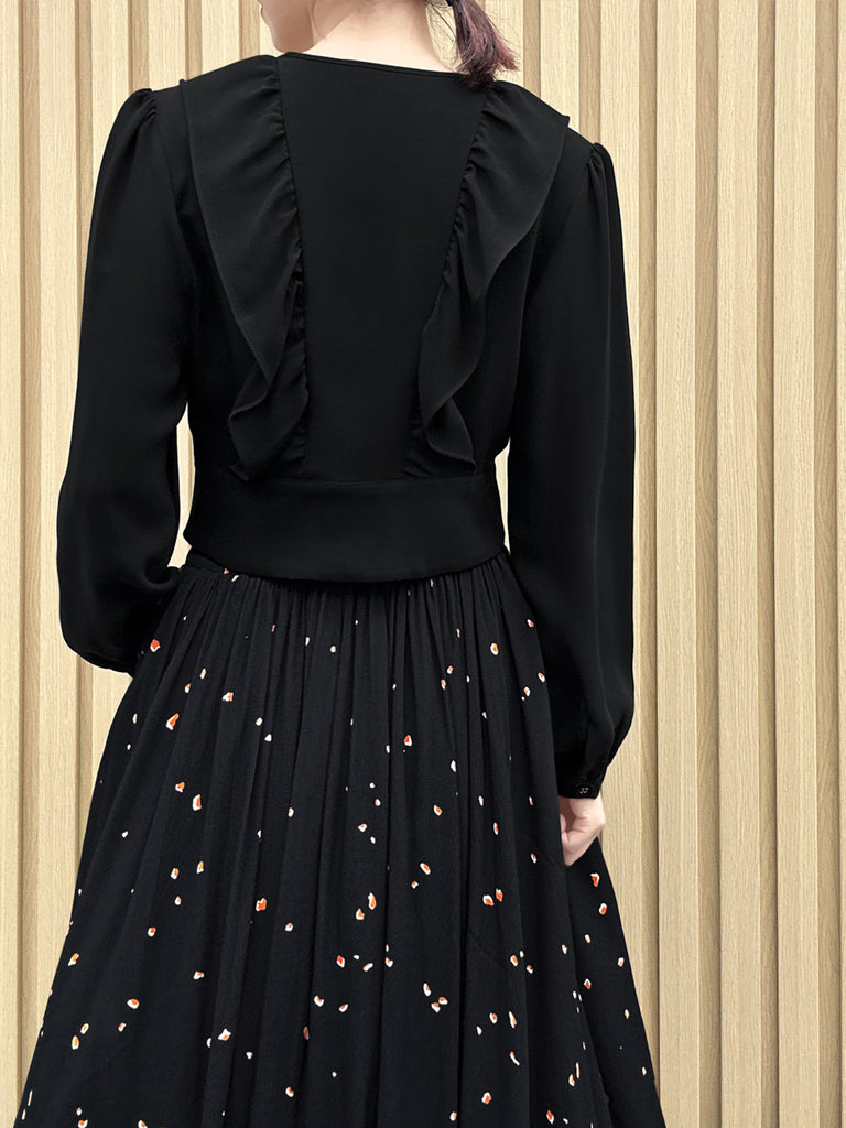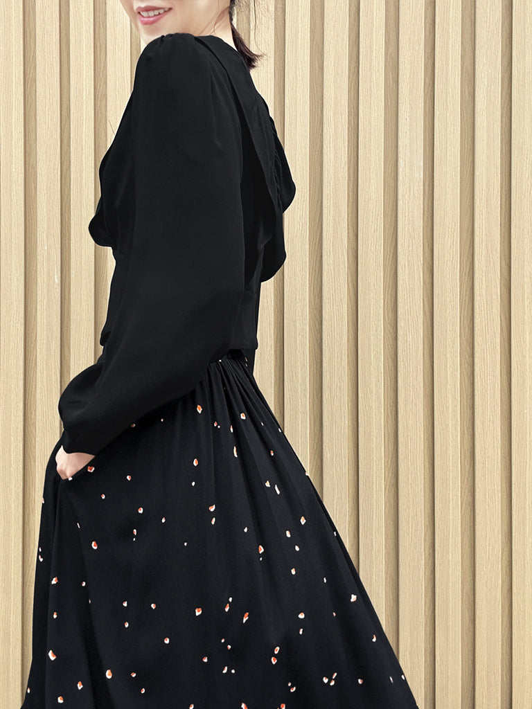 黑色圓點圓領百褶肩針織上衣