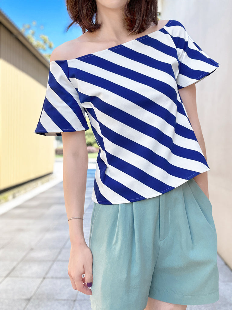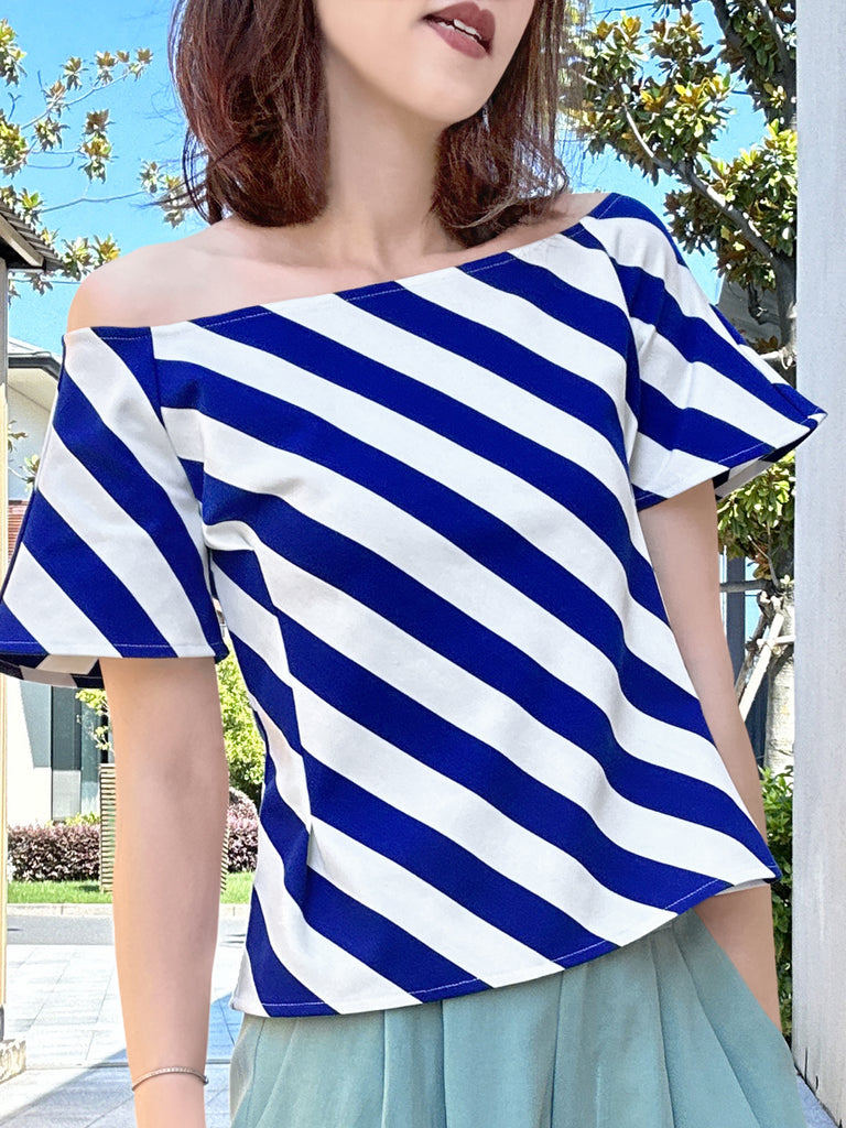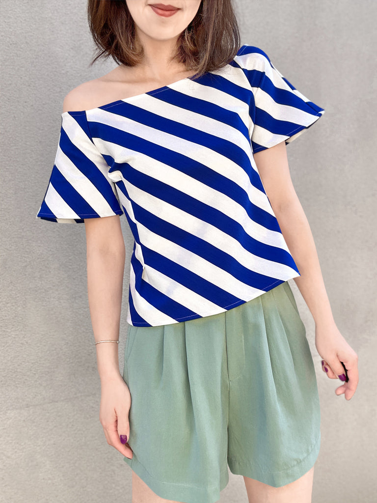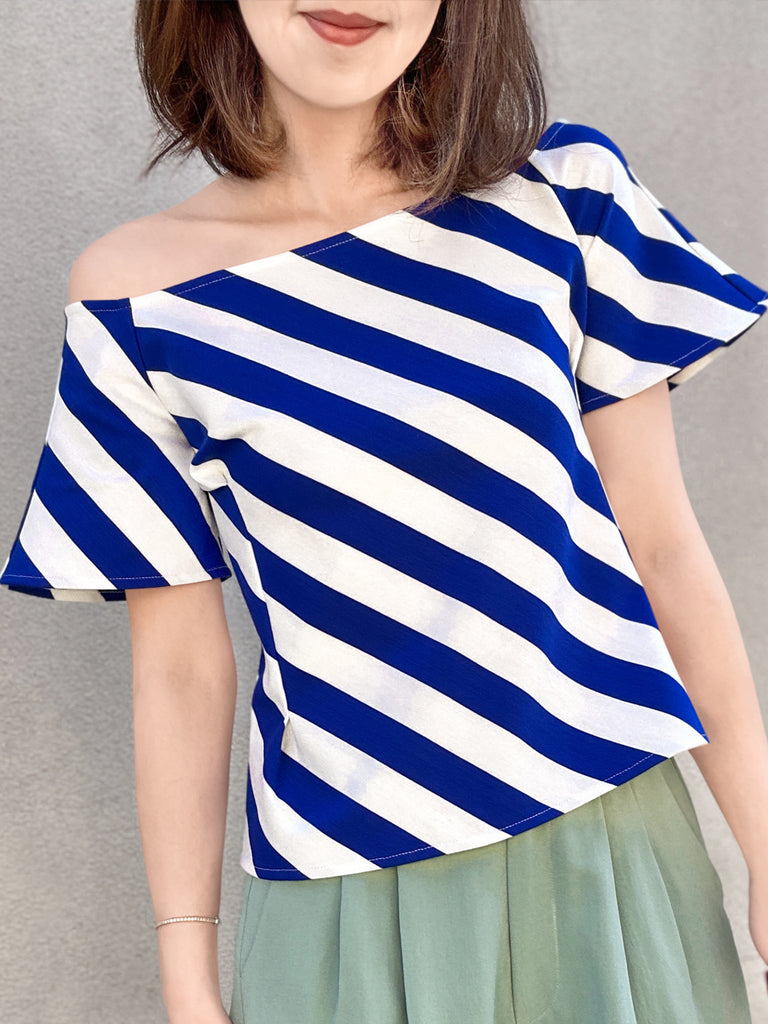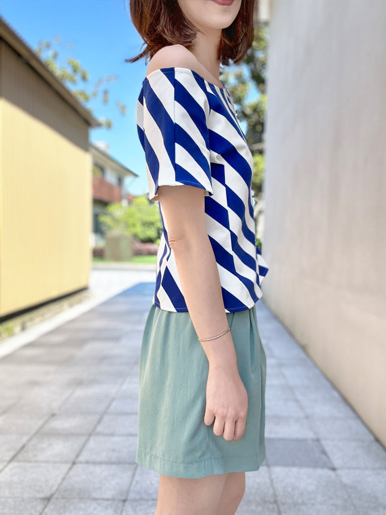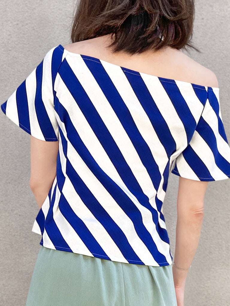 Final Sale! Black Diamond Side Zip Off-the-Shoulder Darted Top