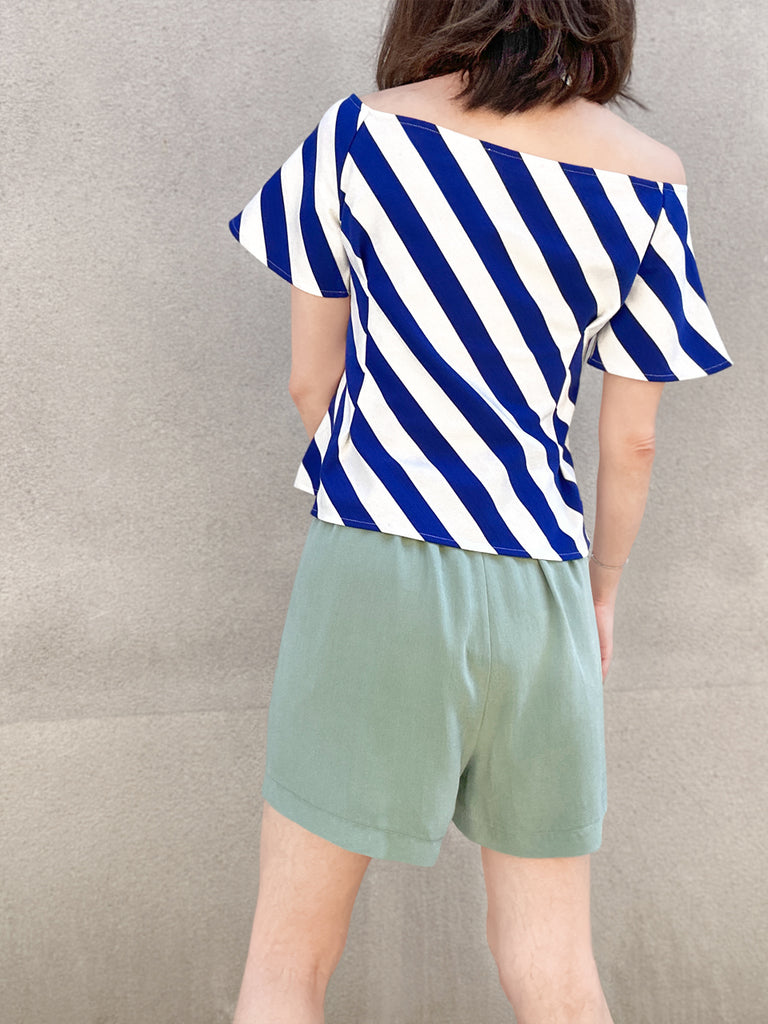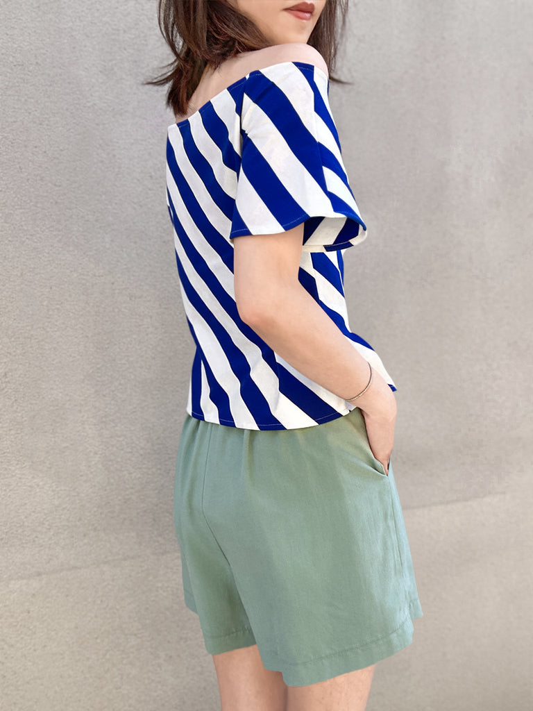 Mono Stripes Double Breasted Ruffles V-neck Crop Top