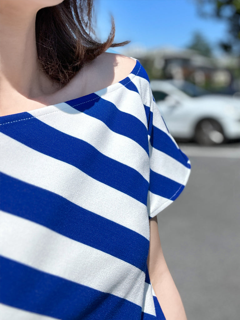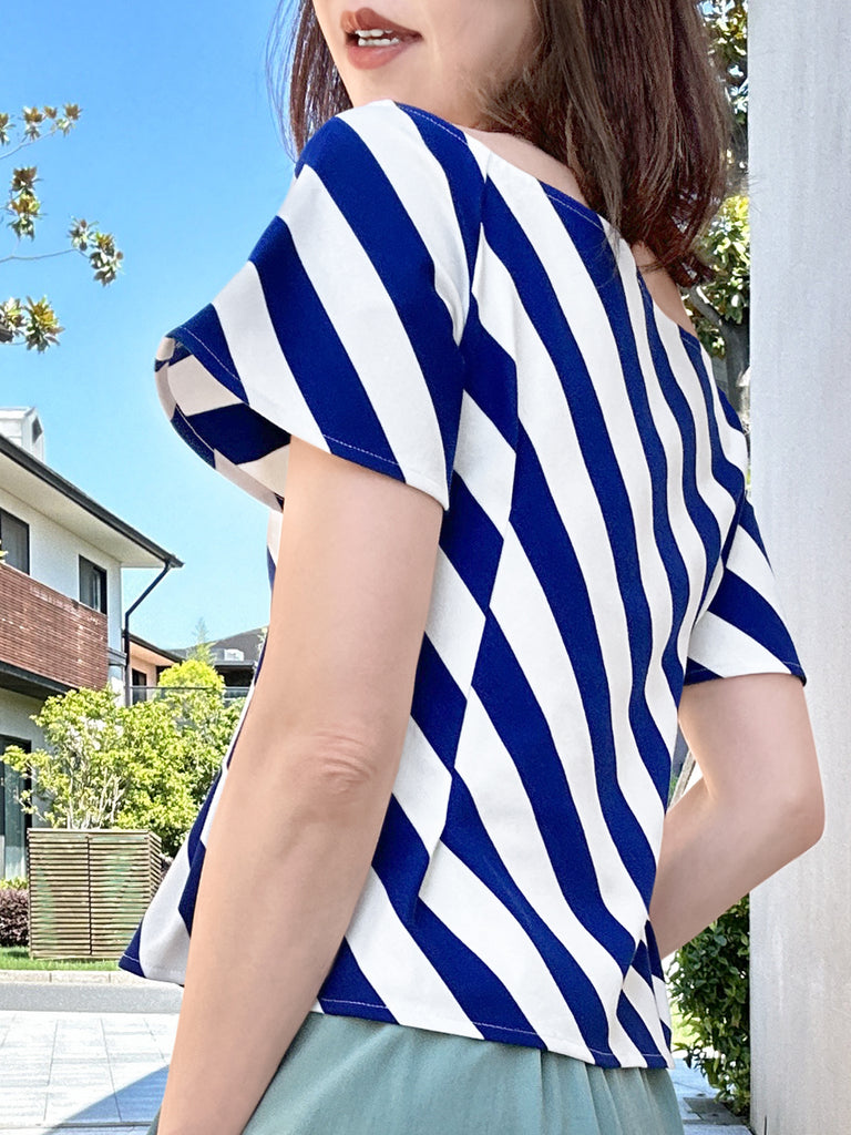 Final Sale! Black/ White Stripe Contrast Ruffle Cuff U-back Knit Top