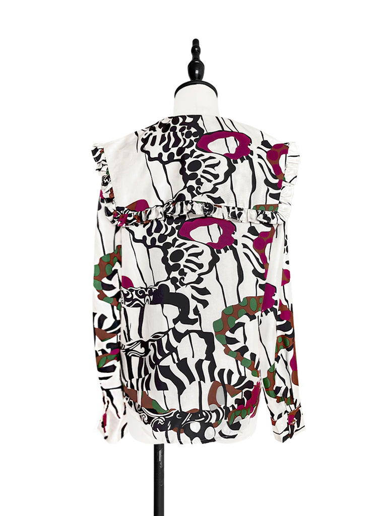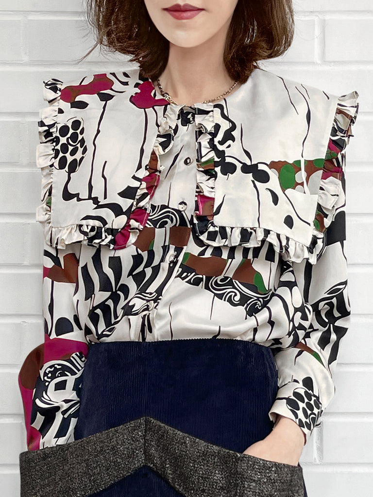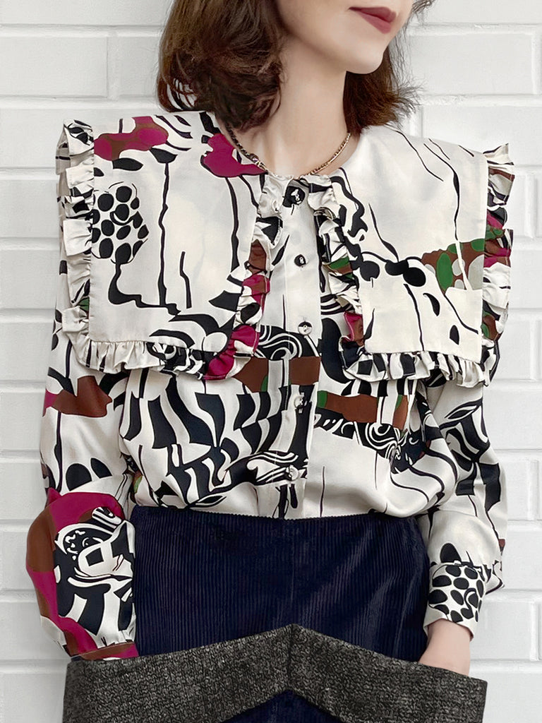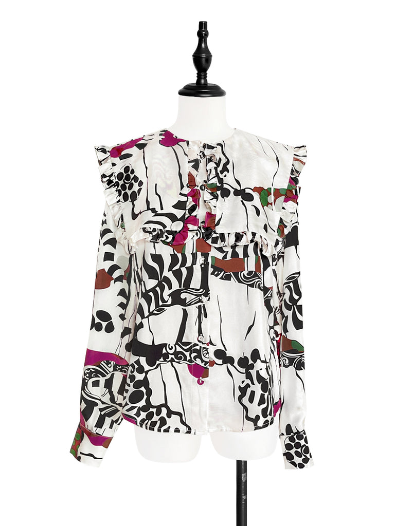 驚喜促銷!花卉蕾絲飾邊荷葉邊下擺剪裁紋理襯衫