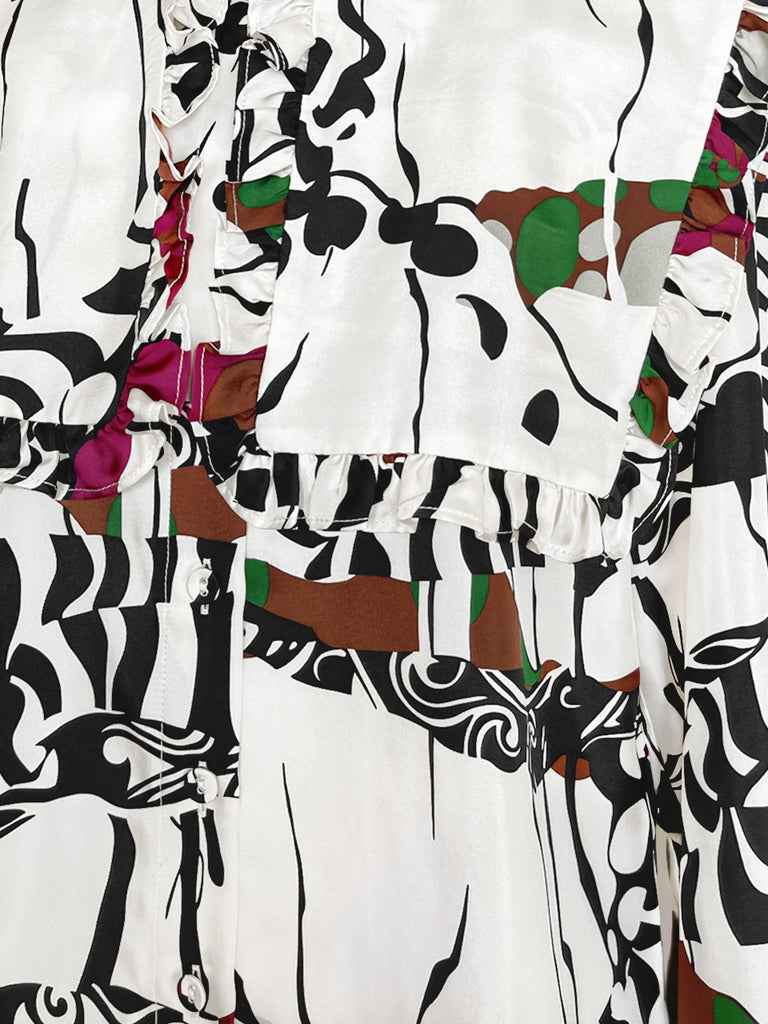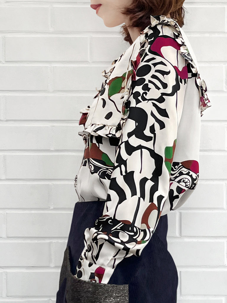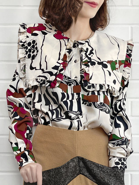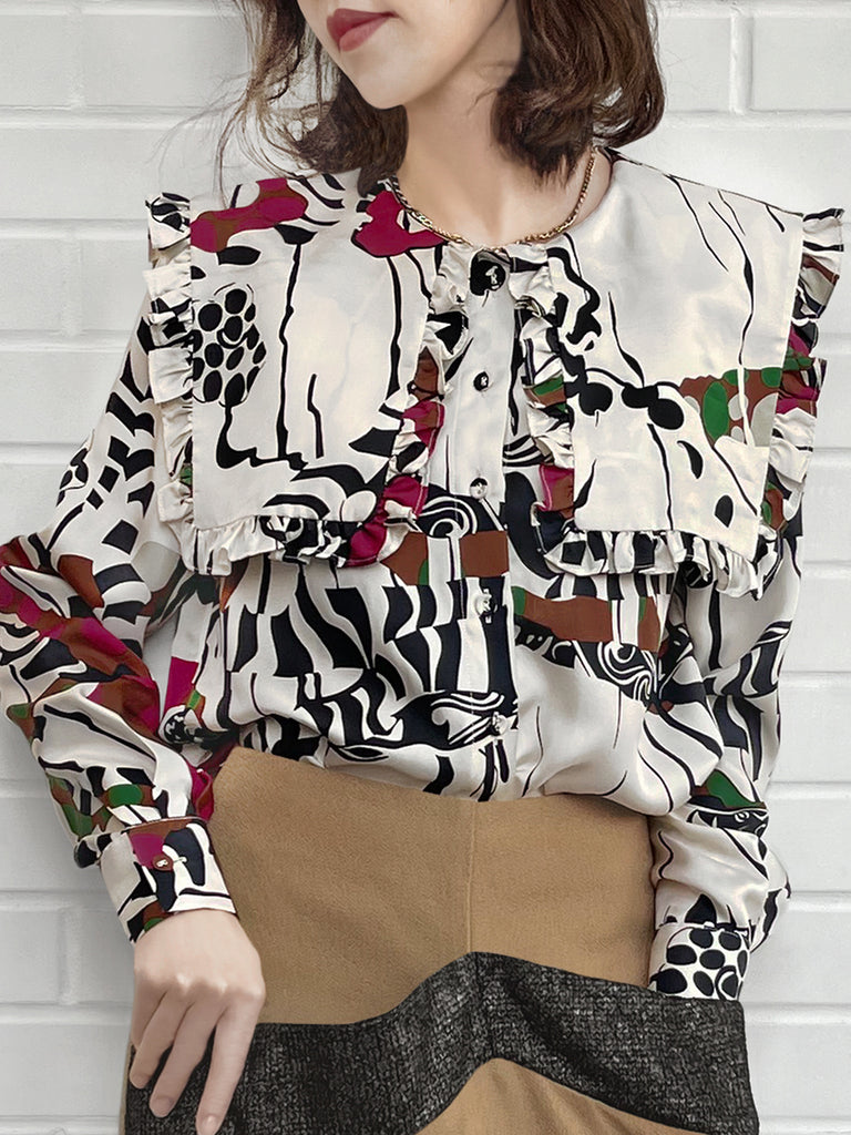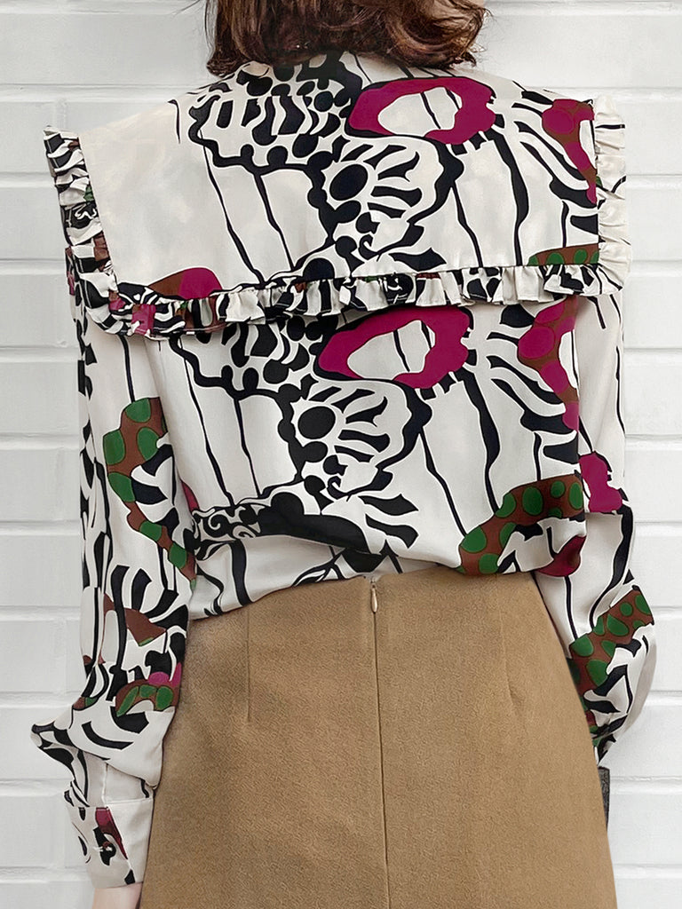 驚喜促銷!花卉蕾絲飾邊荷葉邊下擺剪裁紋理襯衫