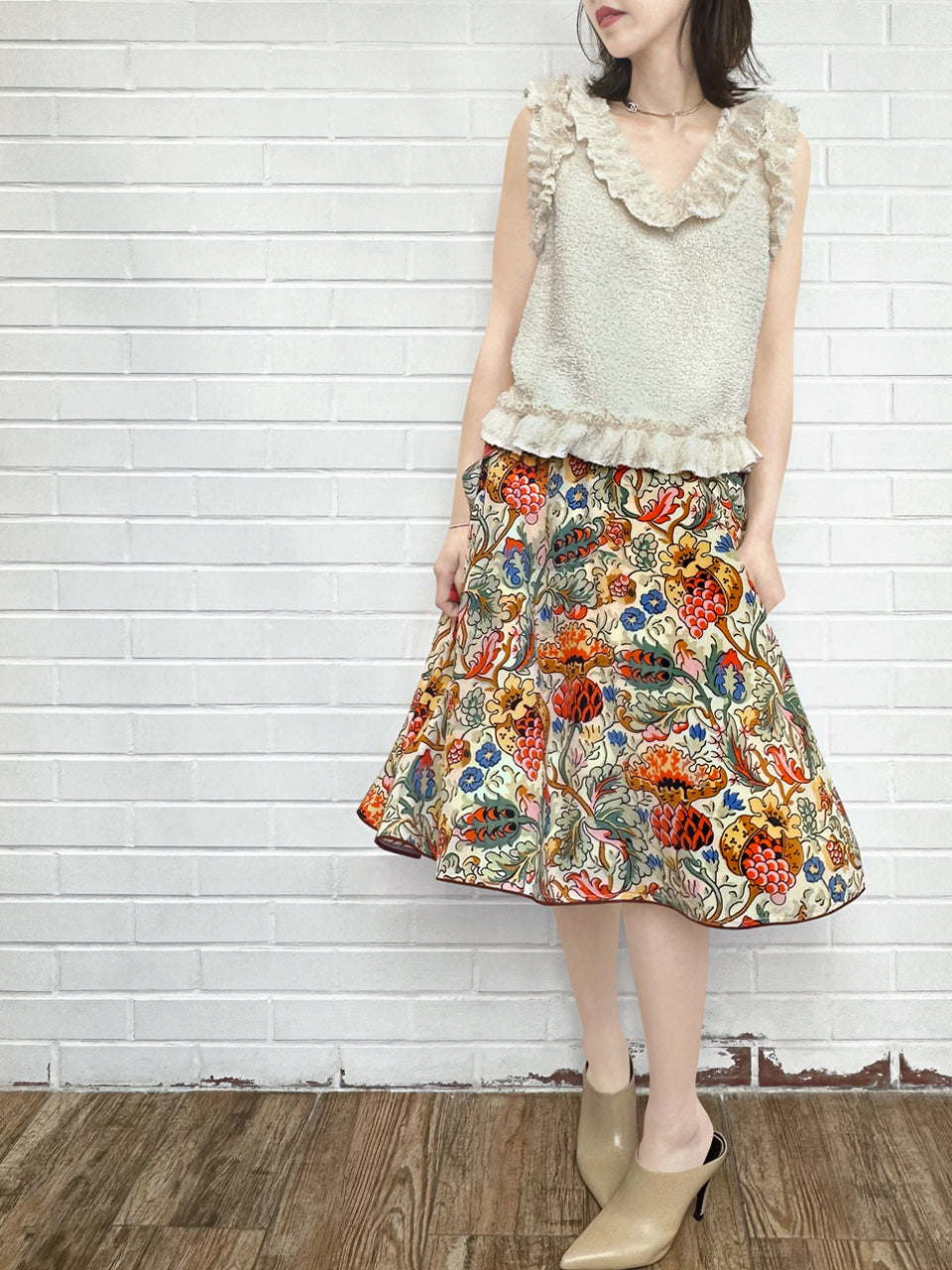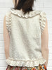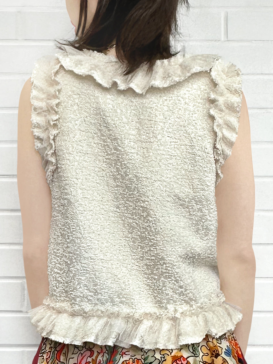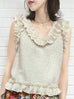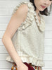 金色提花分層網布荷葉邊無袖上衣