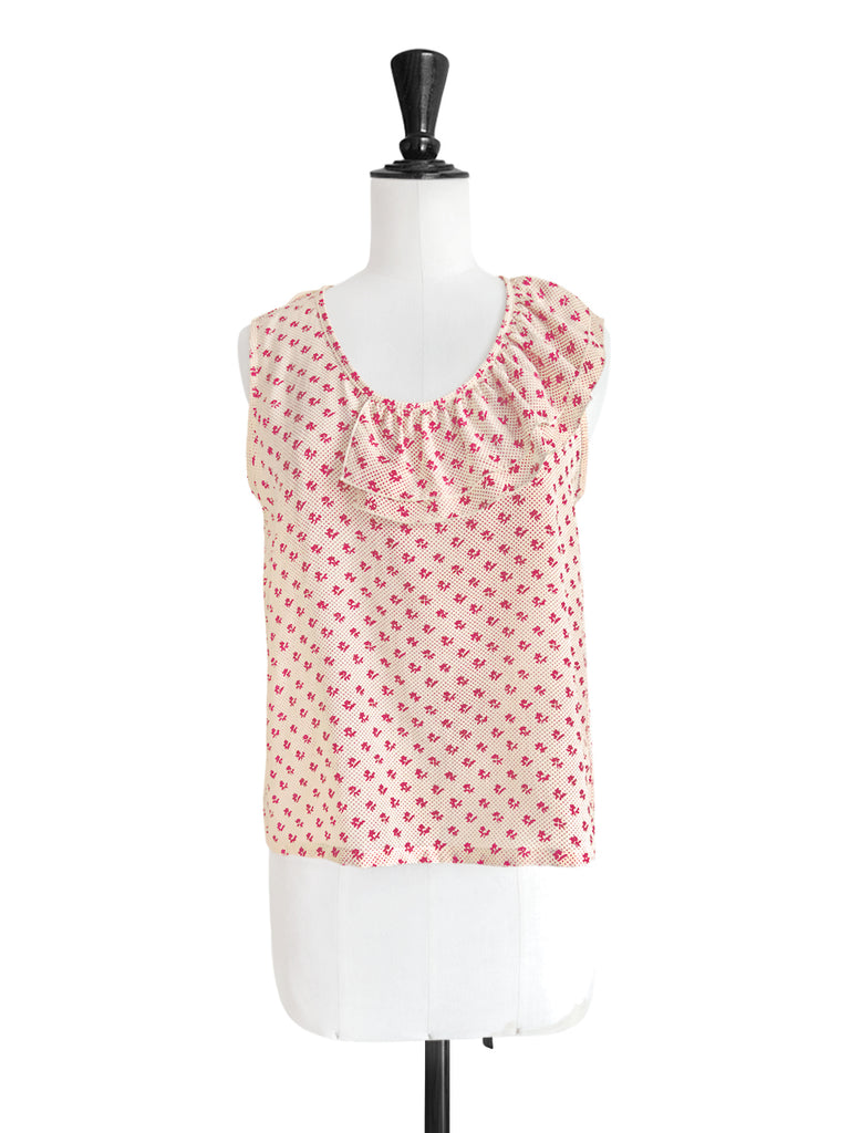 Final Sale! Fuchsia Pleated Ruffle Shoulder Textured Silk Tank