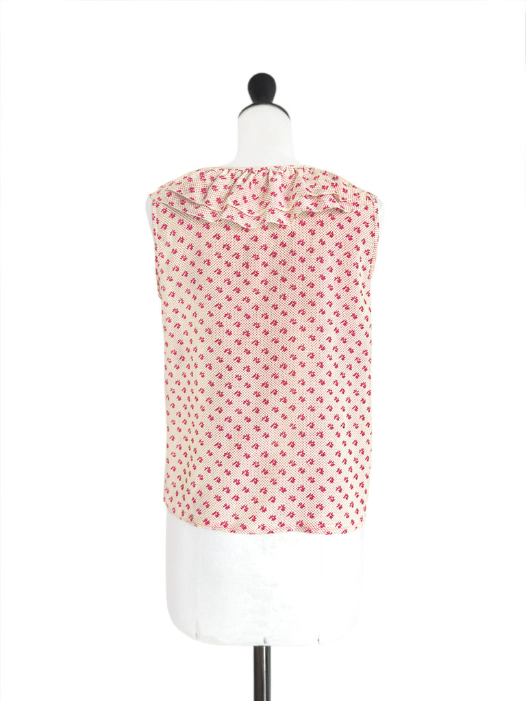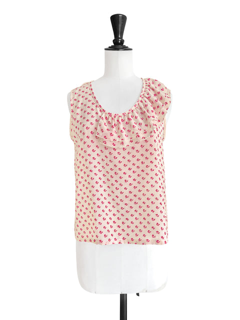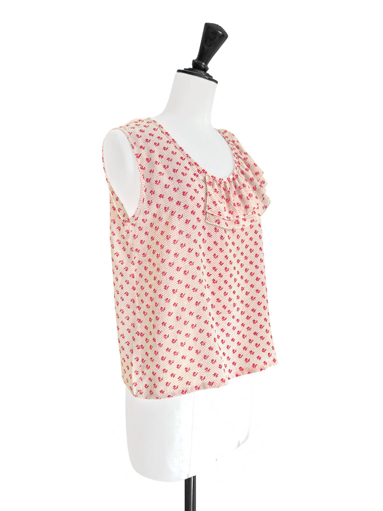 Final Sale! Pink Scallop V-neck Silk Tank With Removable Bow