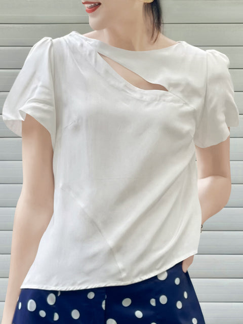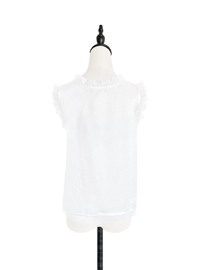白色開衩細節燈籠袖荷葉邊長襯衫