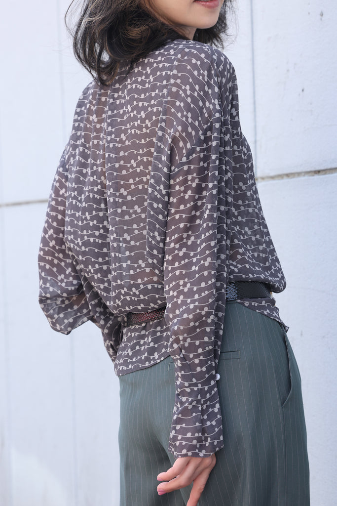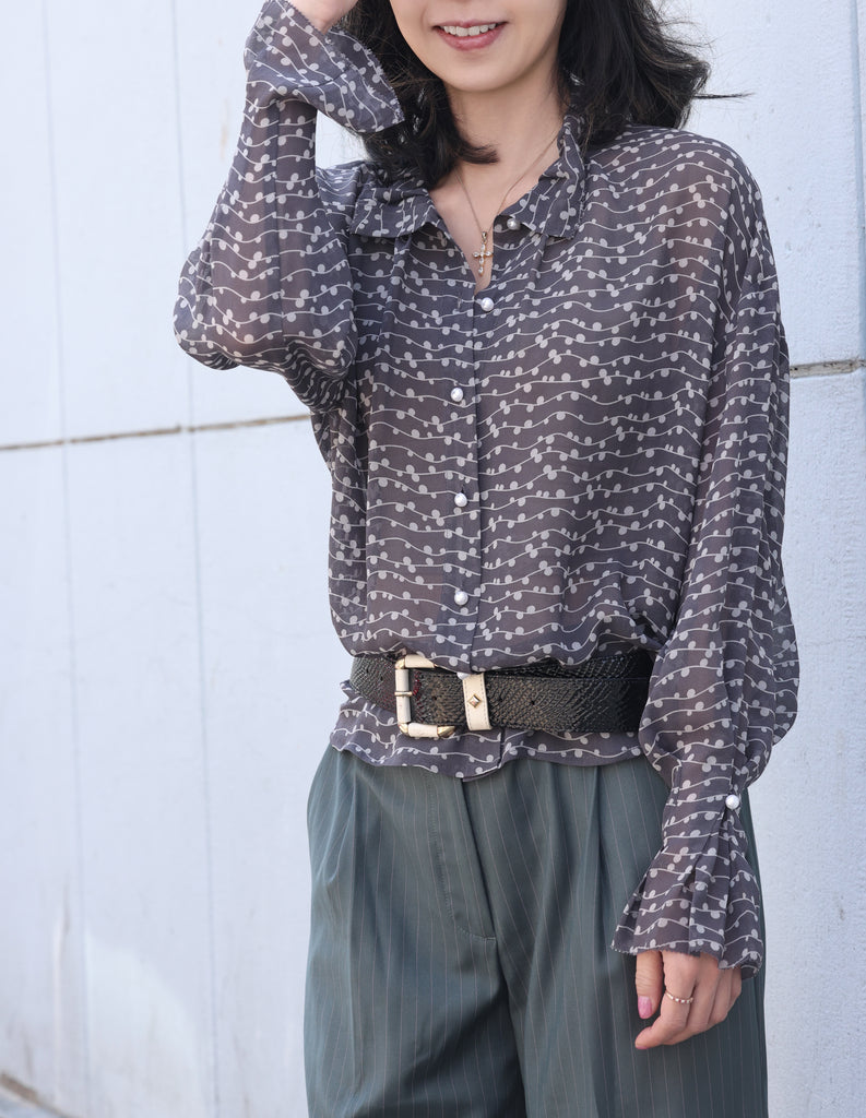 Brown Dots Ruffle Collar Long Sleeve Button Breezy Blouse