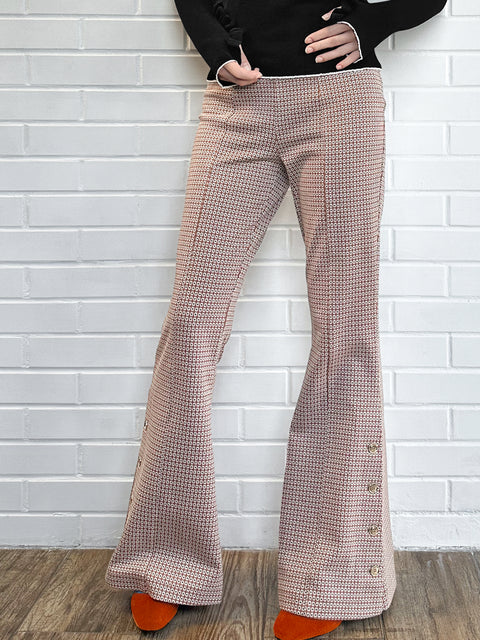 珊瑚色/黑色撞色褶襉腰部透氣闊腿褲