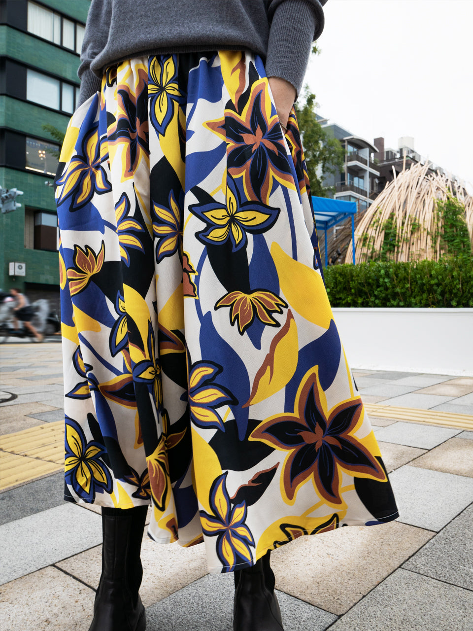 以乳白色為底色,點綴著黃色和紫藍色的充滿活力的尾隨花朵,這樣的陽光親吻的調色板。鬆緊腰部和褶皺腰帶確保舒適貼合,兩個實用性口袋。搭配靴子打造冬季造型,或搭配運動鞋營造休閒氛圍。天氣涼爽時,不妨搭配毛衣,打造優雅造型。擁抱每個季節的花卉優雅。