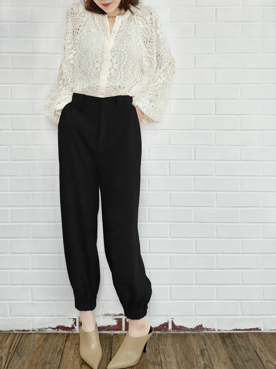 這款褲子採用時尚面料,採用涼爽的慢跑剪裁,適合全年穿著,當然可以與我們的西裝外套搭配,但也可以單獨穿著。鬆緊袖口和紐帶拉鍊門襟,再加上足夠寬鬆的版型,它們搭配高跟鞋和運動鞋一樣好看。
