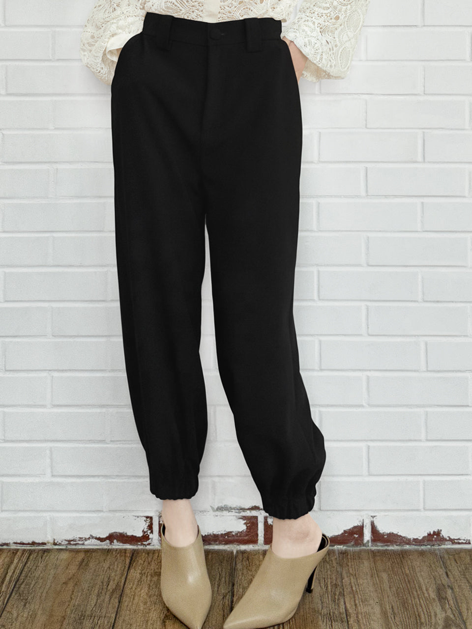 驚喜促銷!黑色休閒酷踝慢跑褲