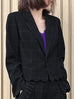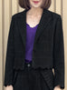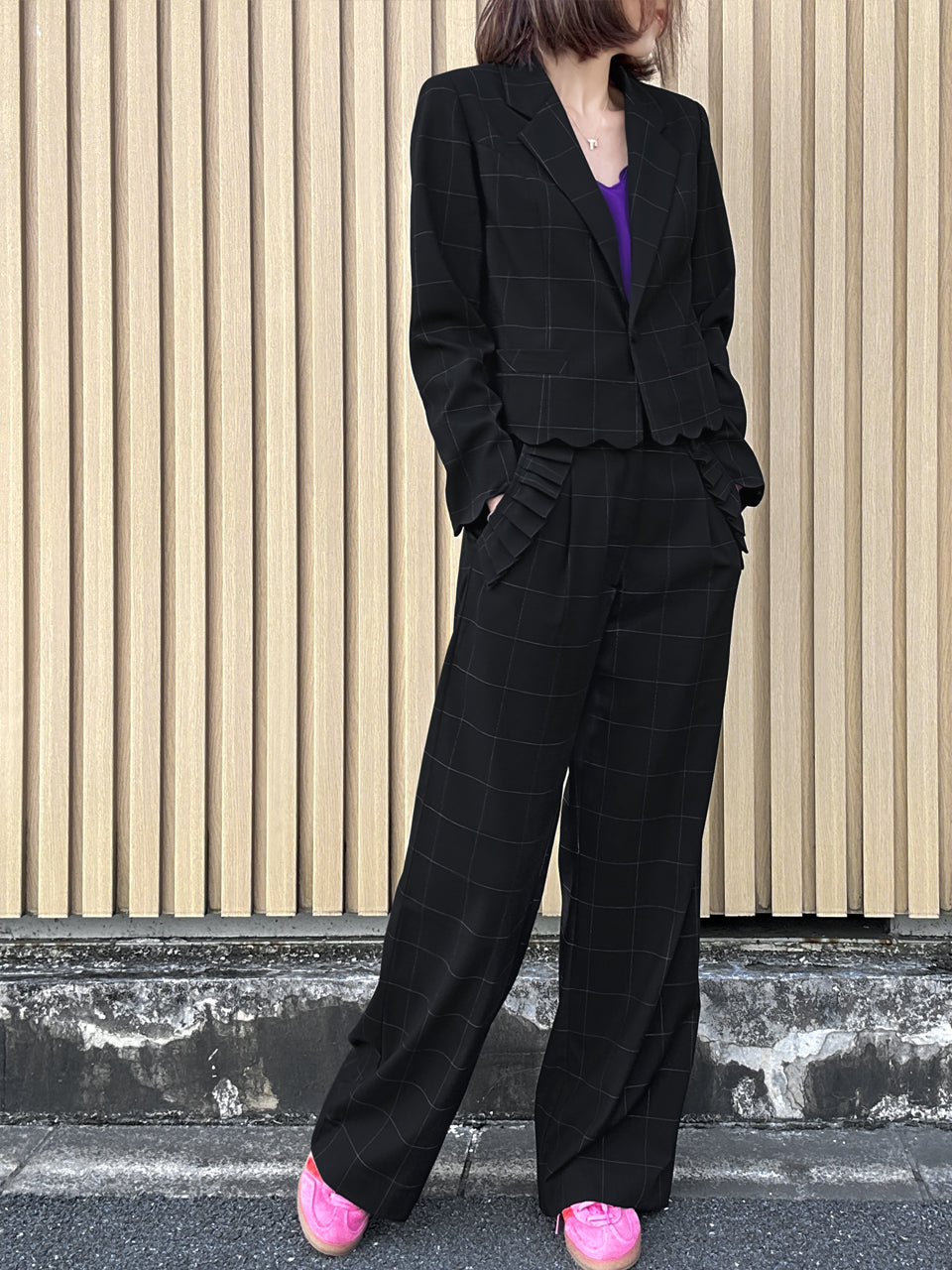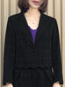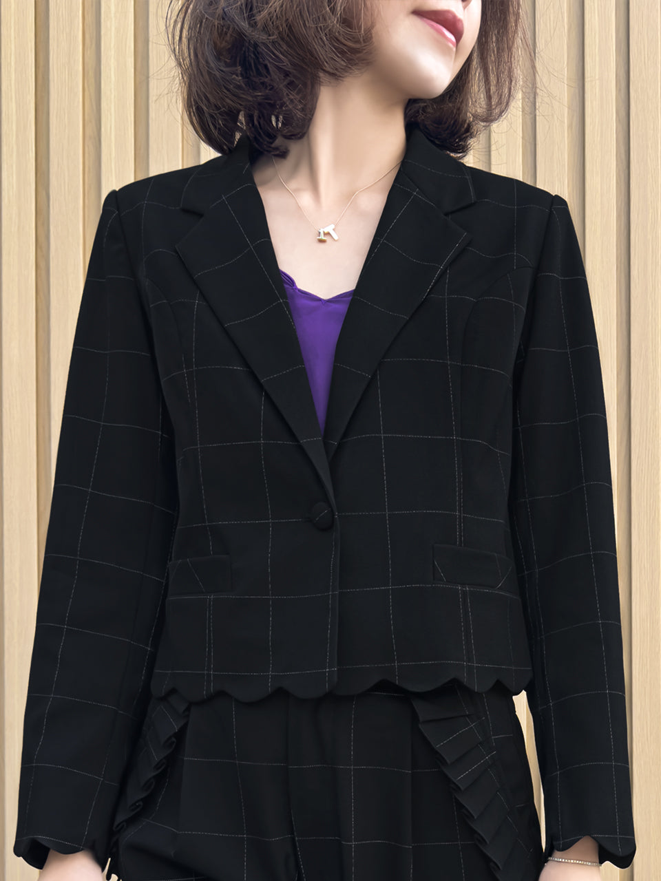 Black Checks Scallop Detail Cropped Boxy Blazer